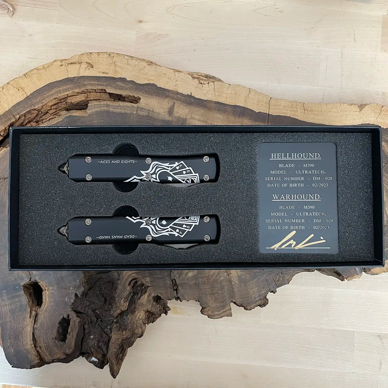 Microtech Ultratech Dead Man's Hand Hellhound and Warhound Set Bronzed Apocalyptic Standard Signature Series 119-13SETDMS