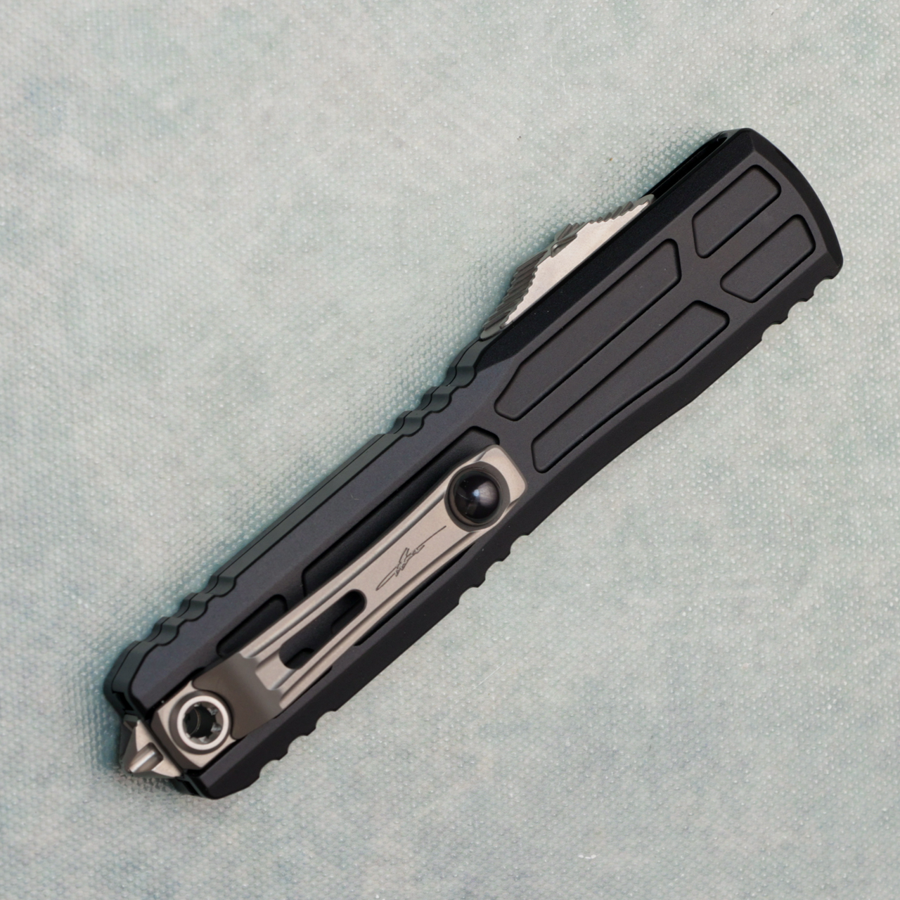 The Ultratech from Microtech is one of their most popular models, it definately provides the most bang for the buck. It will forever set the standard for all out the front knives. The Ultratech is Microtech's original double action out the front knife, and has been the foundation of their entire OTF line. Over the years, it has gone through several modifications, each time becoming more efficient and reliable. The Ultratech's spring remains in an "at rest" position at all times except when deployed. This ensures that the compressed spring will not become fatigued, assuring users that when the knife is fired, it will operate effectively. The Ultratech's lightweight, one handed open and close action, slim shape, and scalpel sharp blade make it a one of a kind knife!