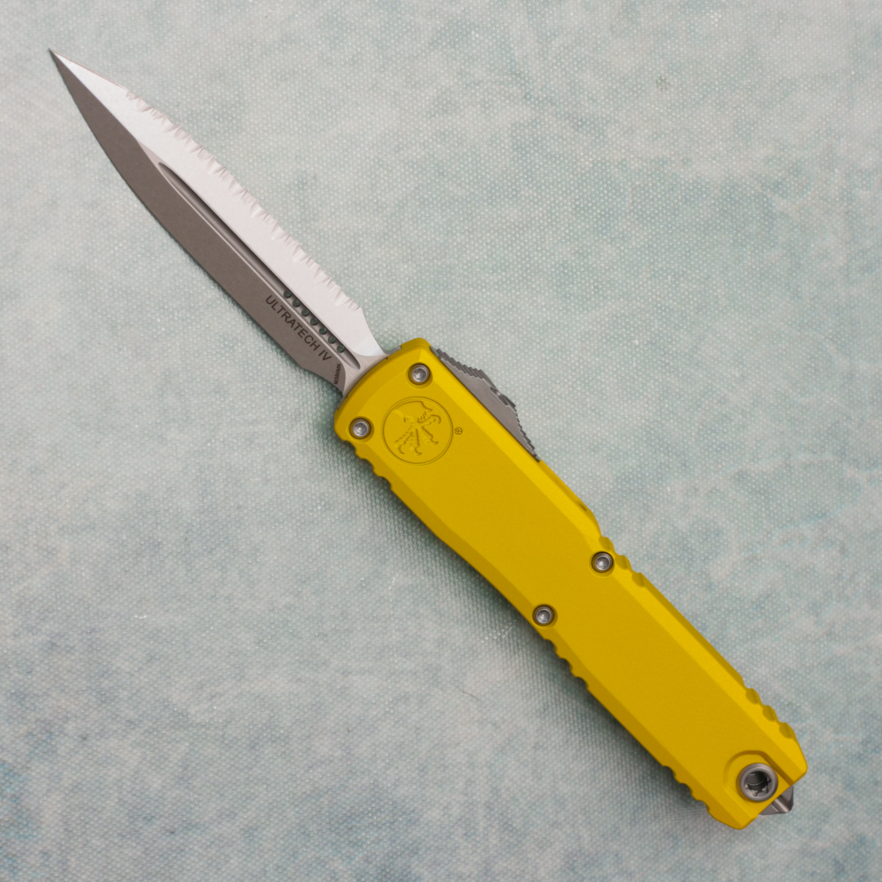 Microtech Ultratech Gen IV D/E Yellow Handle Stonewash Full Serrated 11224-12YW