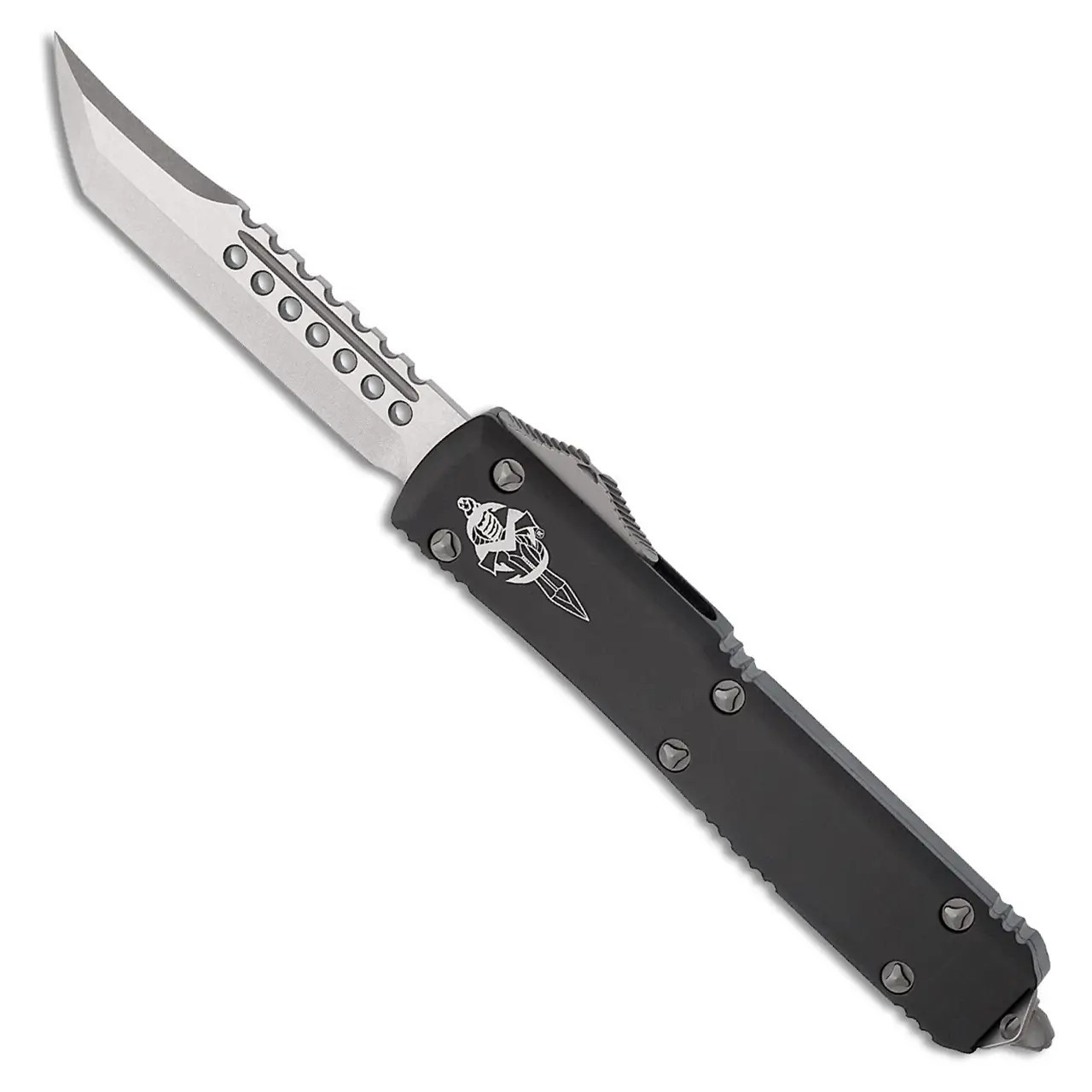 The Ultratech from Microtech is one of their most popular models, it definately provides the most bang for the buck. It will forever set the standard for all out the front knives. The Ultratech is Microtech's original double action out the front knife, and has been the foundation of their entire OTF line. Over the years, it has gone through several modifications, each time becoming more efficient and reliable. The Ultratech's spring remains in an "at rest" position at all times except when deployed. This ensures that the compressed spring will not become fatigued, assuring users that when the knife is fired, it will operate effectively. The Ultratech's lightweight, one handed open and close action, slim shape, and scalpel sharp blade make it a one of a kind knife!