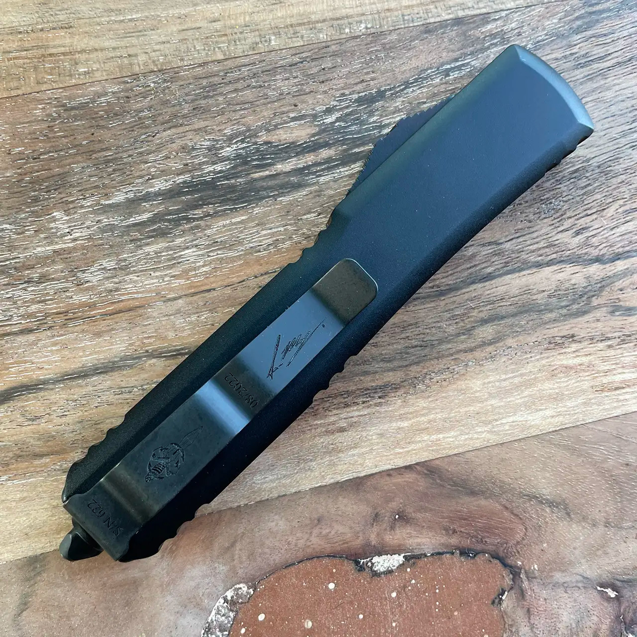 The Ultratech from Microtech is one of their most popular models, it definately provides the most bang for the buck. It will forever set the standard for all out the front knives. The Ultratech is Microtech's original double action out the front knife, and has been the foundation of their entire OTF line. Over the years, it has gone through several modifications, each time becoming more efficient and reliable. The Ultratech's spring remains in an "at rest" position at all times except when deployed. This ensures that the compressed spring will not become fatigued, assuring users that when the knife is fired, it will operate effectively. The Ultratech's lightweight, one handed open and close action, slim shape, and scalpel sharp blade make it a one of a kind knife!