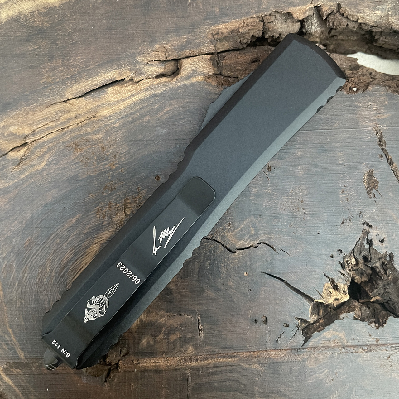 The Ultratech from Microtech is one of their most popular models, it definately provides the most bang for the buck. It will forever set the standard for all out the front knives. The Ultratech is Microtech's original double action out the front knife, and has been the foundation of their entire OTF line. Over the years, it has gone through several modifications, each time becoming more efficient and reliable. The Ultratech's spring remains in an "at rest" position at all times except when deployed. This ensures that the compressed spring will not become fatigued, assuring users that when the knife is fired, it will operate effectively. The Ultratech's lightweight, one handed open and close action, slim shape, and scalpel sharp blade make it a one of a kind knife!