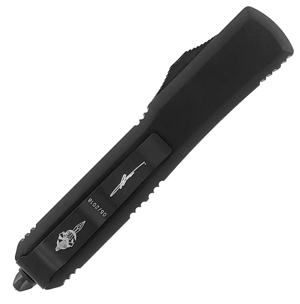 The Ultratech from Microtech is one of their most popular models, it definately provides the most bang for the buck. It will forever set the standard for all out the front knives. The Ultratech is Microtech's original double action out the front knife, and has been the foundation of their entire OTF line. Over the years, it has gone through several modifications, each time becoming more efficient and reliable. The Ultratech's spring remains in an "at rest" position at all times except when deployed. This ensures that the compressed spring will not become fatigued, assuring users that when the knife is fired, it will operate effectively. The Ultratech's lightweight, one handed open and close action, slim shape, and scalpel sharp blade make it a one of a kind knife!