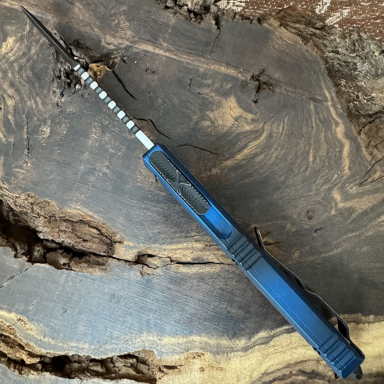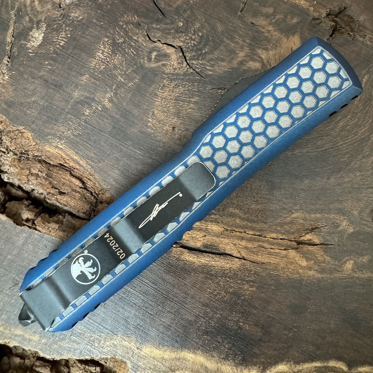 Microtech Ultratech Hellhound Weathered Blue Hex Handle Black Standard Blade Signature Series 119-1HXWBLS
