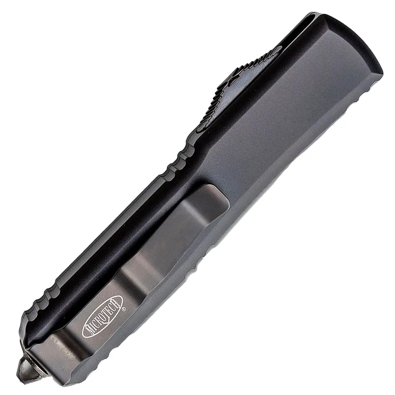 The Ultratech from Microtech is one of their most popular models, it definately provides the most bang for the buck. It will forever set the standard for all out the front knives. The Ultratech is Microtech's original double action out the front knife, and has been the foundation of their entire OTF line. Over the years, it has gone through several modifications, each time becoming more efficient and reliable. The Ultratech's spring remains in an "at rest" position at all times except when deployed. This ensures that the compressed spring will not become fatigued, assuring users that when the knife is fired, it will operate effectively. The Ultratech's lightweight, one handed open and close action, slim shape, and scalpel sharp blade make it a one of a kind knife!