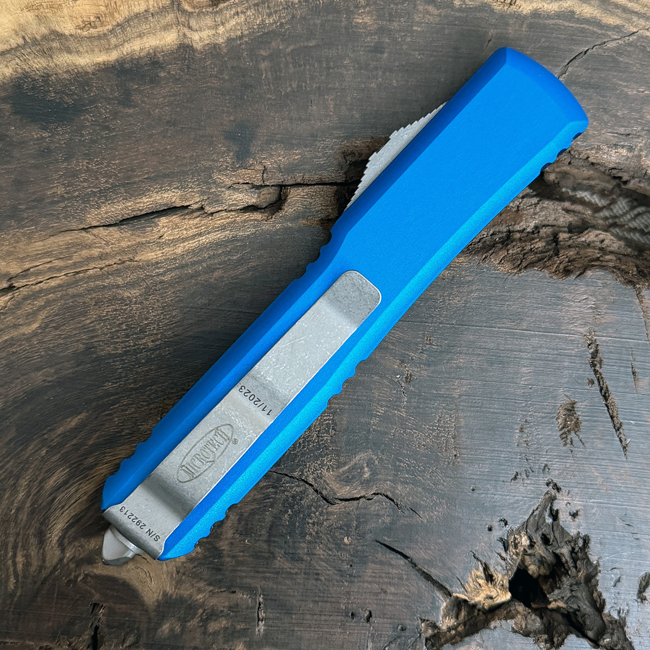 Microtech Ultratech S/E Blue Handle Apocalyptic Standard Blade 121-10APBL