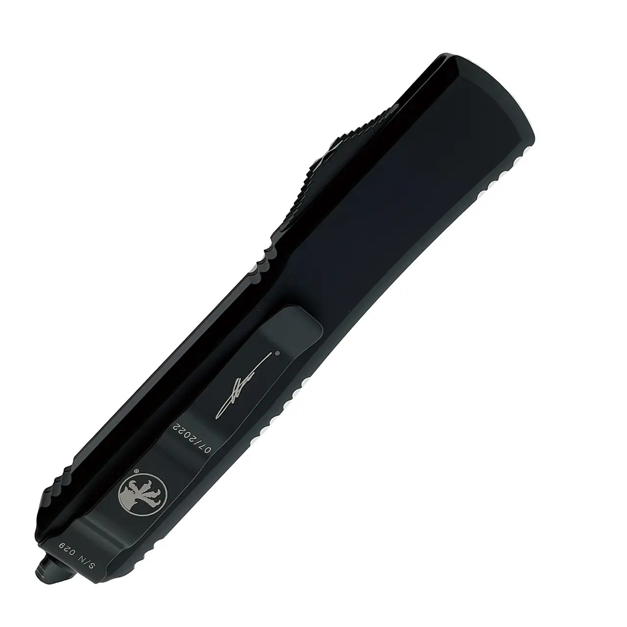 The Ultratech from Microtech is one of their most popular models, it definately provides the most bang for the buck. It will forever set the standard for all out the front knives. The Ultratech is Microtech's original double action out the front knife, and has been the foundation of their entire OTF line. Over the years, it has gone through several modifications, each time becoming more efficient and reliable. The Ultratech's spring remains in an "at rest" position at all times except when deployed. This ensures that the compressed spring will not become fatigued, assuring users that when the knife is fired, it will operate effectively. The Ultratech's lightweight, one handed open and close action, slim shape, and scalpel sharp blade make it a one of a kind knife!