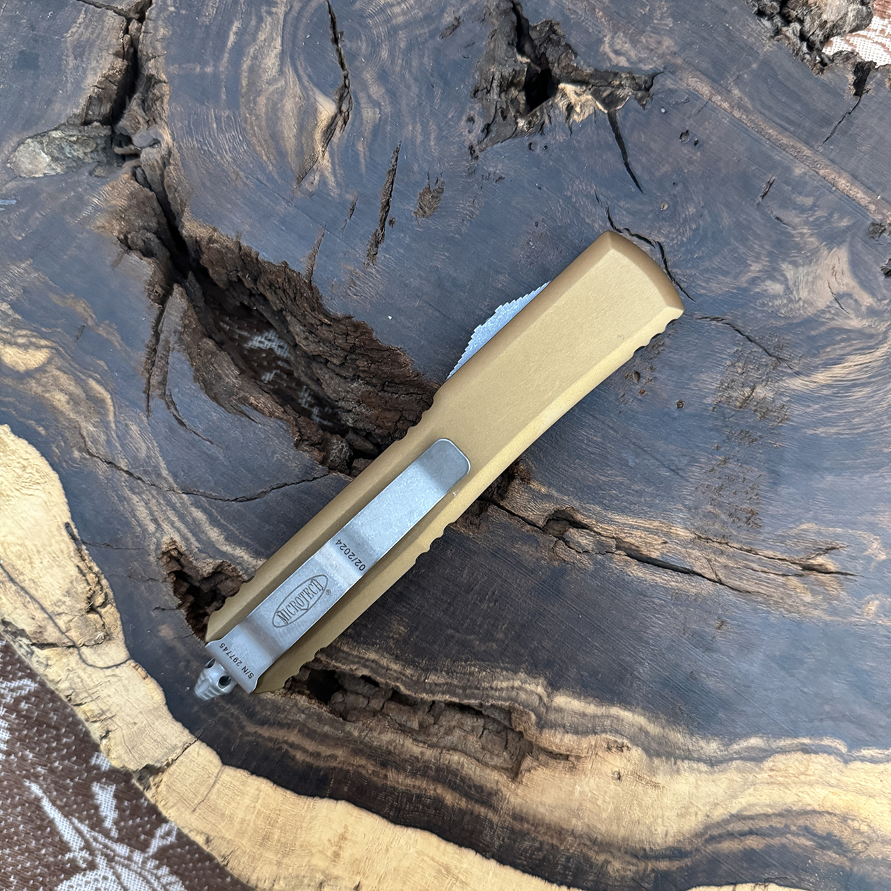 Microtech Ultratech S/E Tan Handle Apocalyptic Serrated Blade 121-11APTA