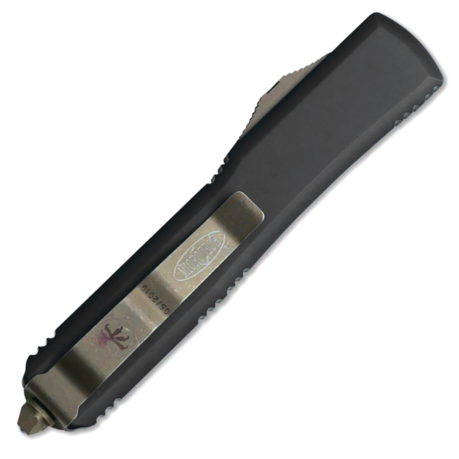 The Ultratech from Microtech is one of their most popular models, it definately provides the most bang for the buck. It will forever set the standard for all out the front knives. The Ultratech is Microtech's original double action out the front knife, and has been the foundation of their entire OTF line. Over the years, it has gone through several modifications, each time becoming more efficient and reliable. The Ultratech's spring remains in an "at rest" position at all times except when deployed. This ensures that the compressed spring will not become fatigued, assuring users that when the knife is fired, it will operate effectively. The Ultratech's lightweight, one handed open and close action, slim shape, and scalpel sharp blade make it a one of a kind knife!