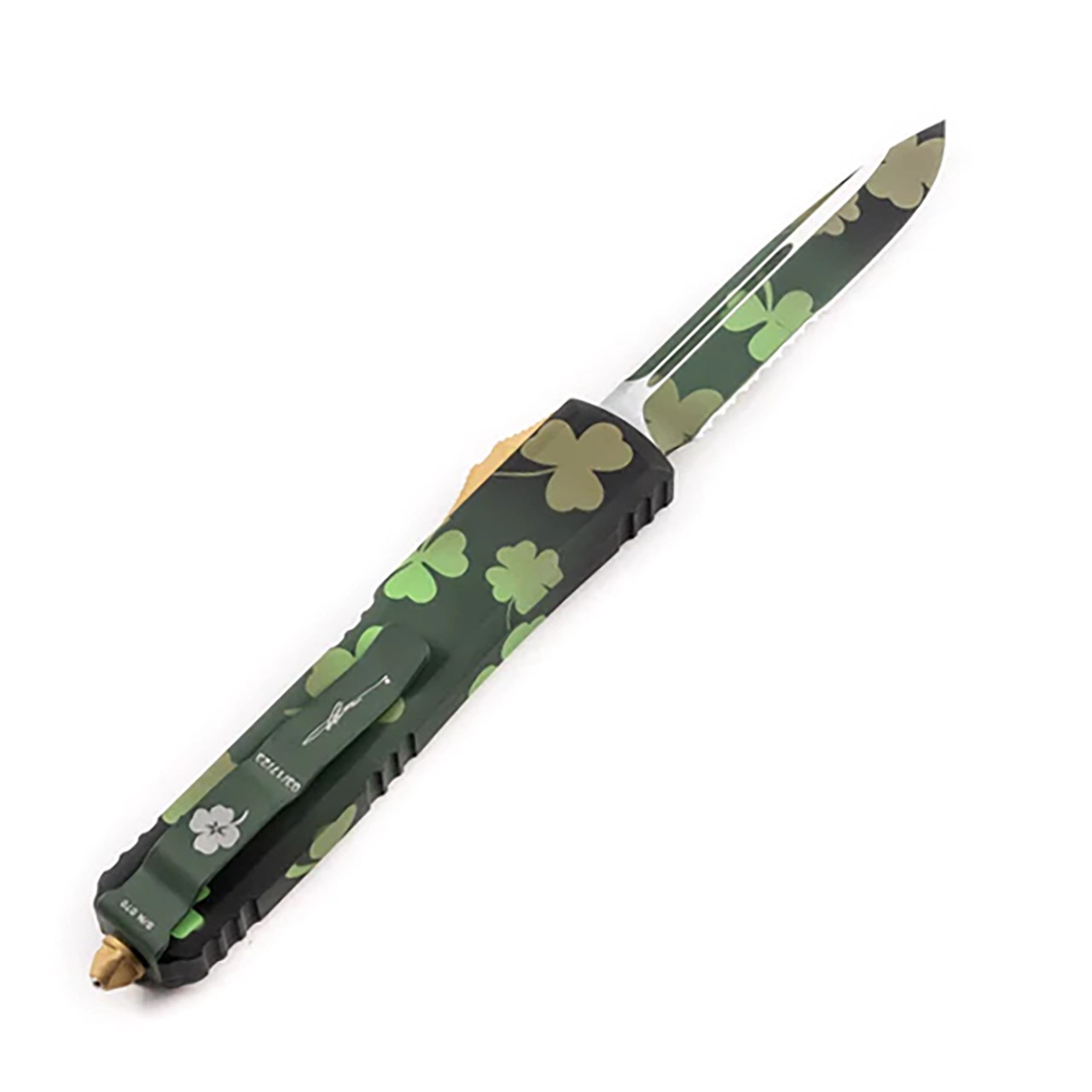 Microtech Ultratech SE SPD Green Serrated Gold Hardware Signature Series 121-2SPDS>