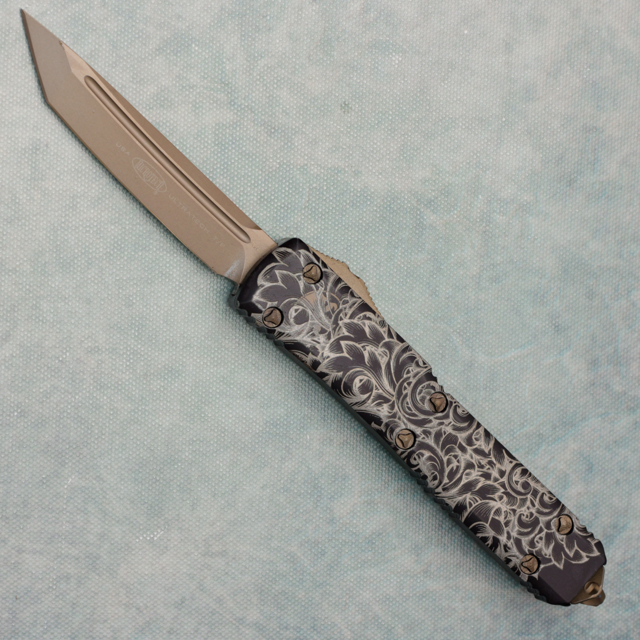 Microtech Ultratech T/E Black Scroll Engraved Handle Bronzed Blade AE Custom Shop 123-1T