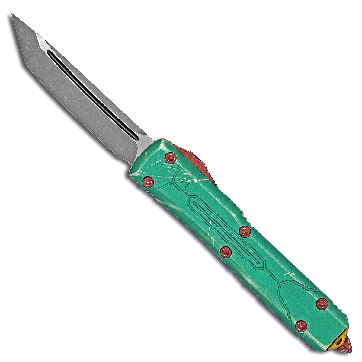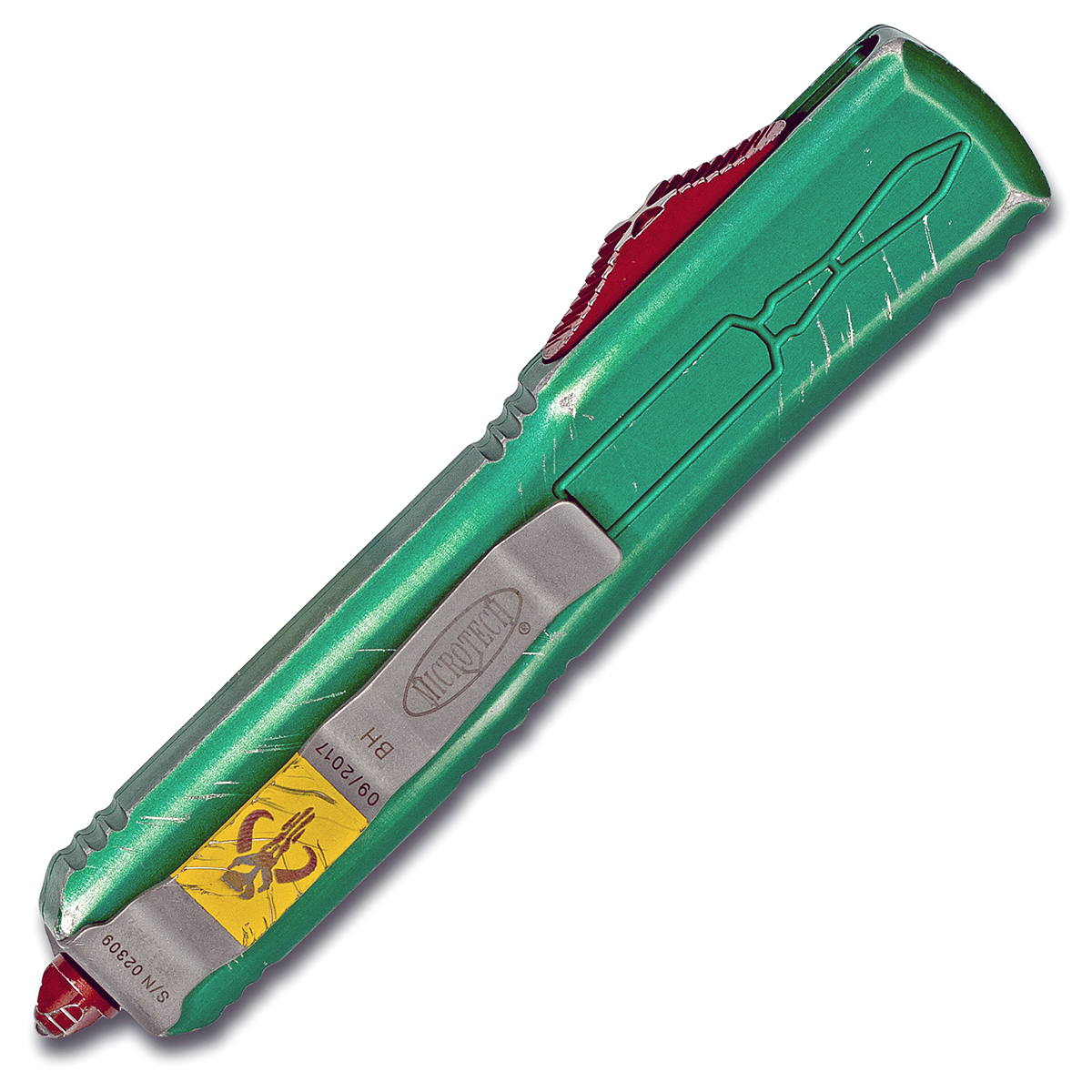 The Ultratech from Microtech is one of their most popular models, it definately provides the most bang for the buck. It will forever set the standard for all out the front knives. The Ultratech is Microtech's original double action out the front knife, and has been the foundation of their entire OTF line. Over the years, it has gone through several modifications, each time becoming more efficient and reliable. The Ultratech's spring remains in an "at rest" position at all times except when deployed. This ensures that the compressed spring will not become fatigued, assuring users that when the knife is fired, it will operate effectively. The Ultratech's lightweight, one handed open and close action, slim shape, and scalpel sharp blade make it a one of a kind knife!
