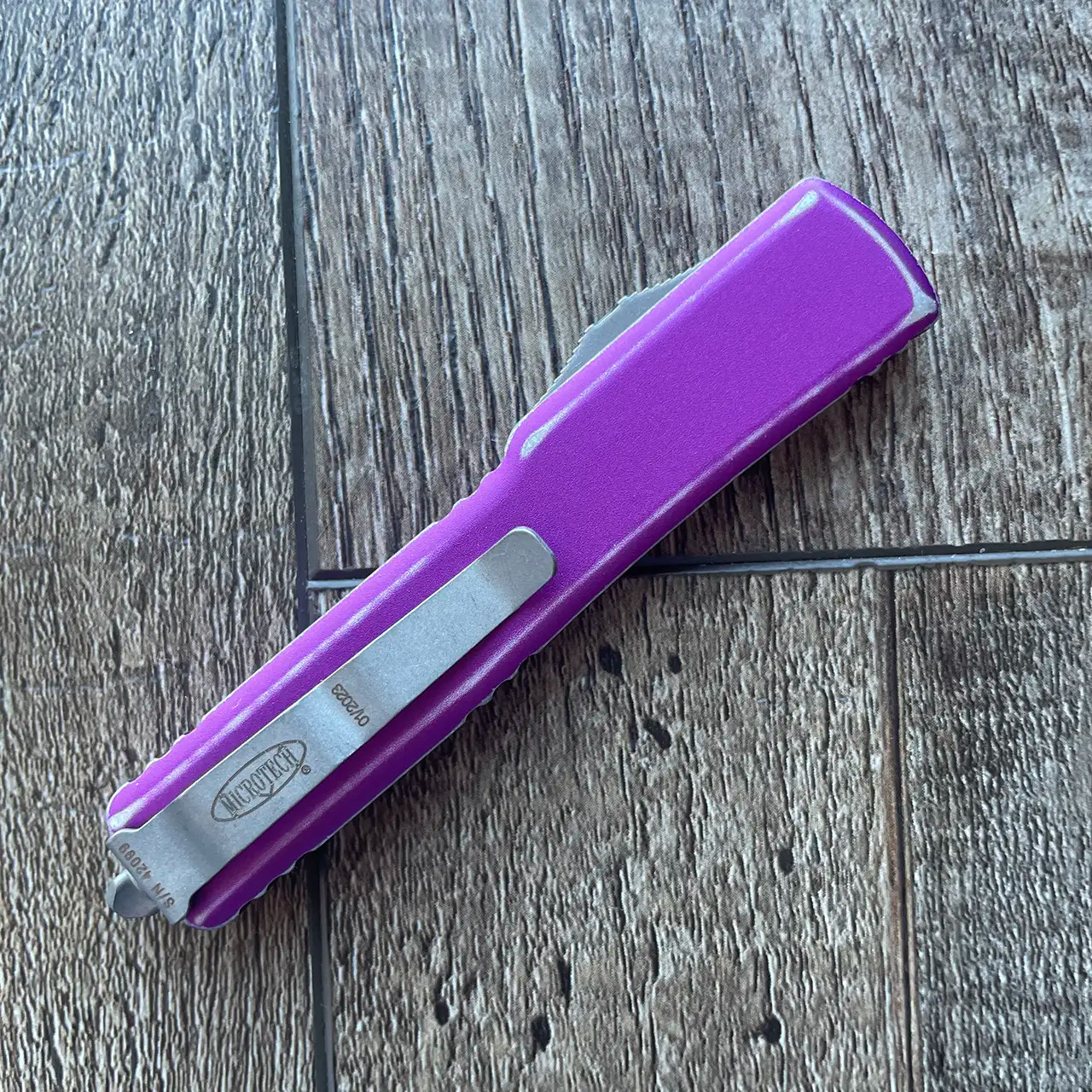 Microtech UTX-70 D/E Distressed Violet Apocalyptic Double Full Serrated 147-D12DVI