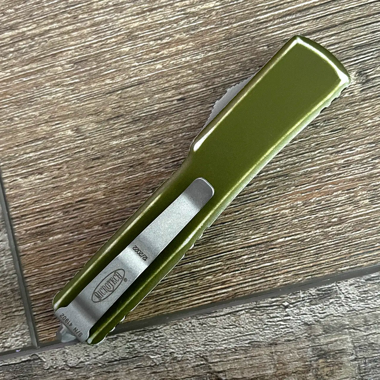 Microtech UTX-70 D/E Distressed OD Green Apocalyptic Double Full Serrated 147-D12DOD