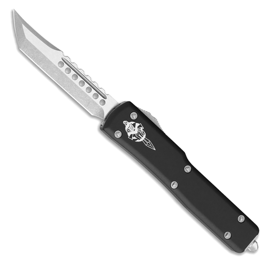 Microtech UTX-70 Hellhound Black Handle Stonewash Standard Blade Signature Series 419-10S