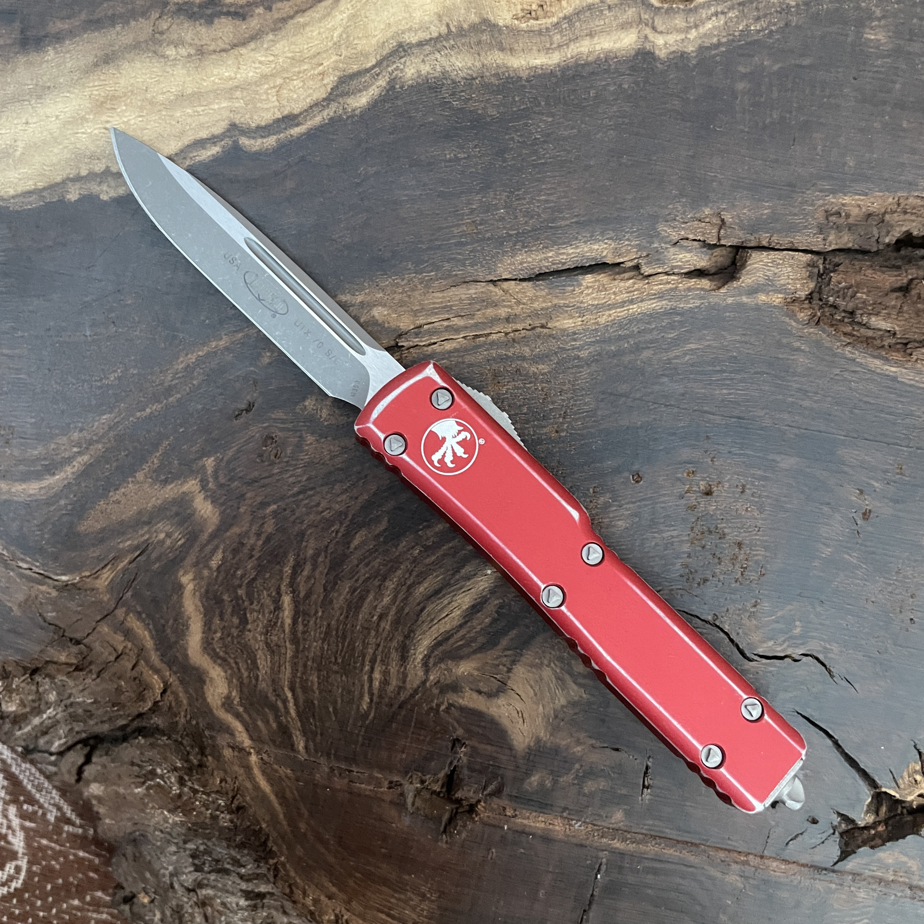 Microtech UTX-70 S/E Distressed Red Stonewash Standard 148-10DRD