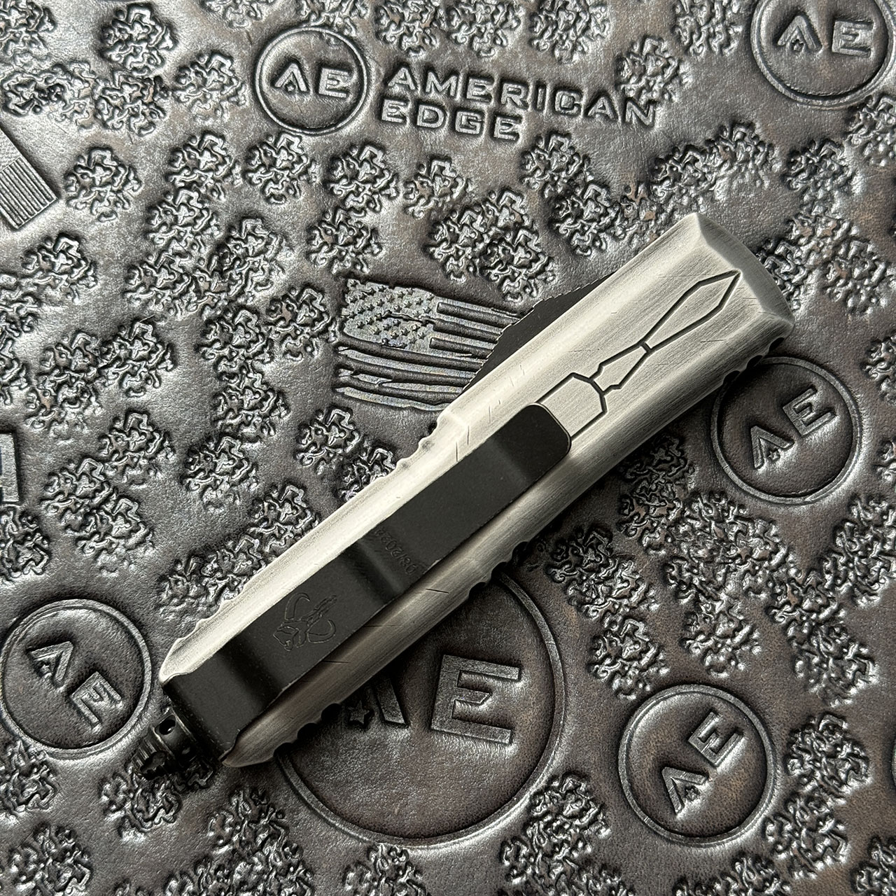 Microtech has updated and refined the UTX-85 model. It features improved ergonomics, with rounded handle faces, and patches of grooves along the sides to ensure excellent grip. The firing button has been redesigned to increase surface contact for effective engagement, and the glass breaker has a ball-tip set in the trip-angle pattern base to increase its everyday carry manners. Based on the Ultratech platform, the UTX-85 is scaled down to 85% of its length. The UTX-85 is an appealing option for those who prefer a smaller EDC knife and value Microtech's high-performance out-the-front action and exceptional build quality.