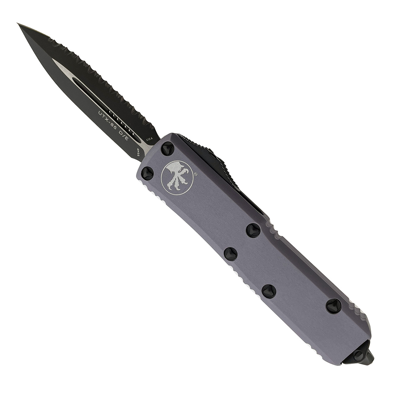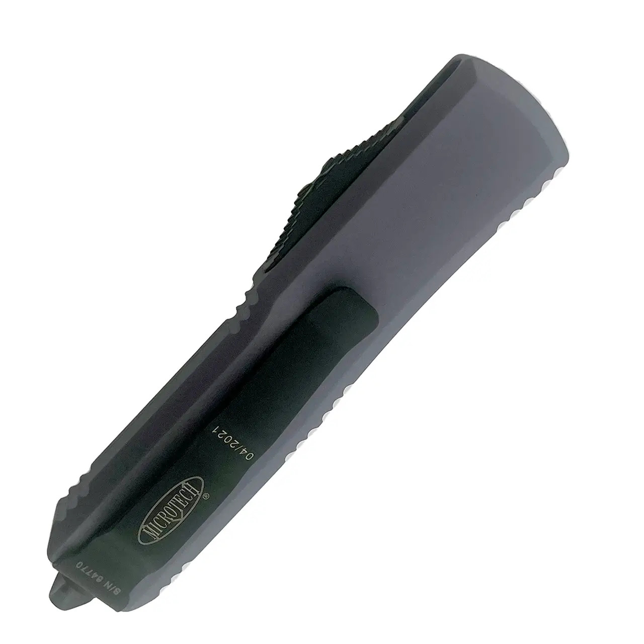 Microtech UTX-85 D/E Gray Handle Full Serrated Black Blade 232-3GY