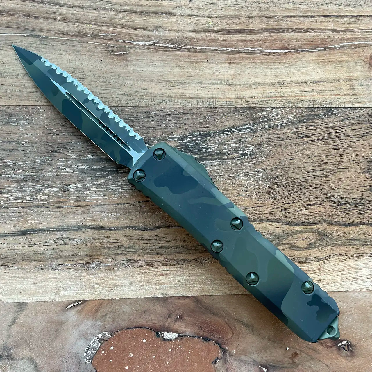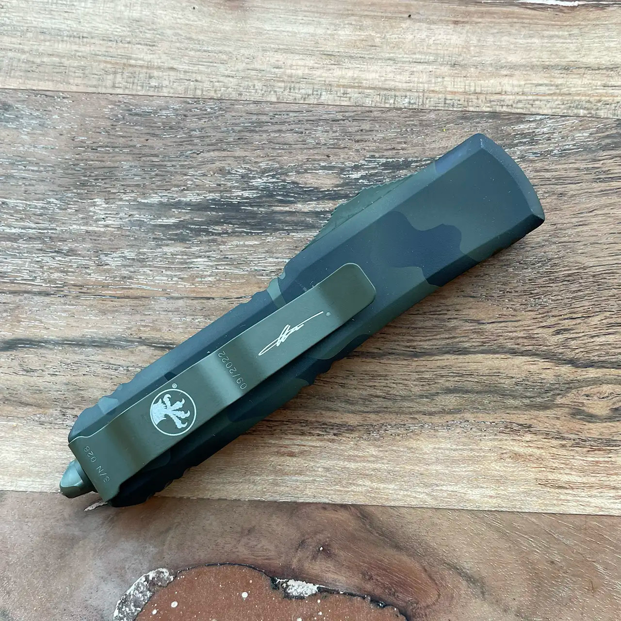 Microtech UTX-85 D/E Olive Camo Full Serrated Signature Series 232-3OCS