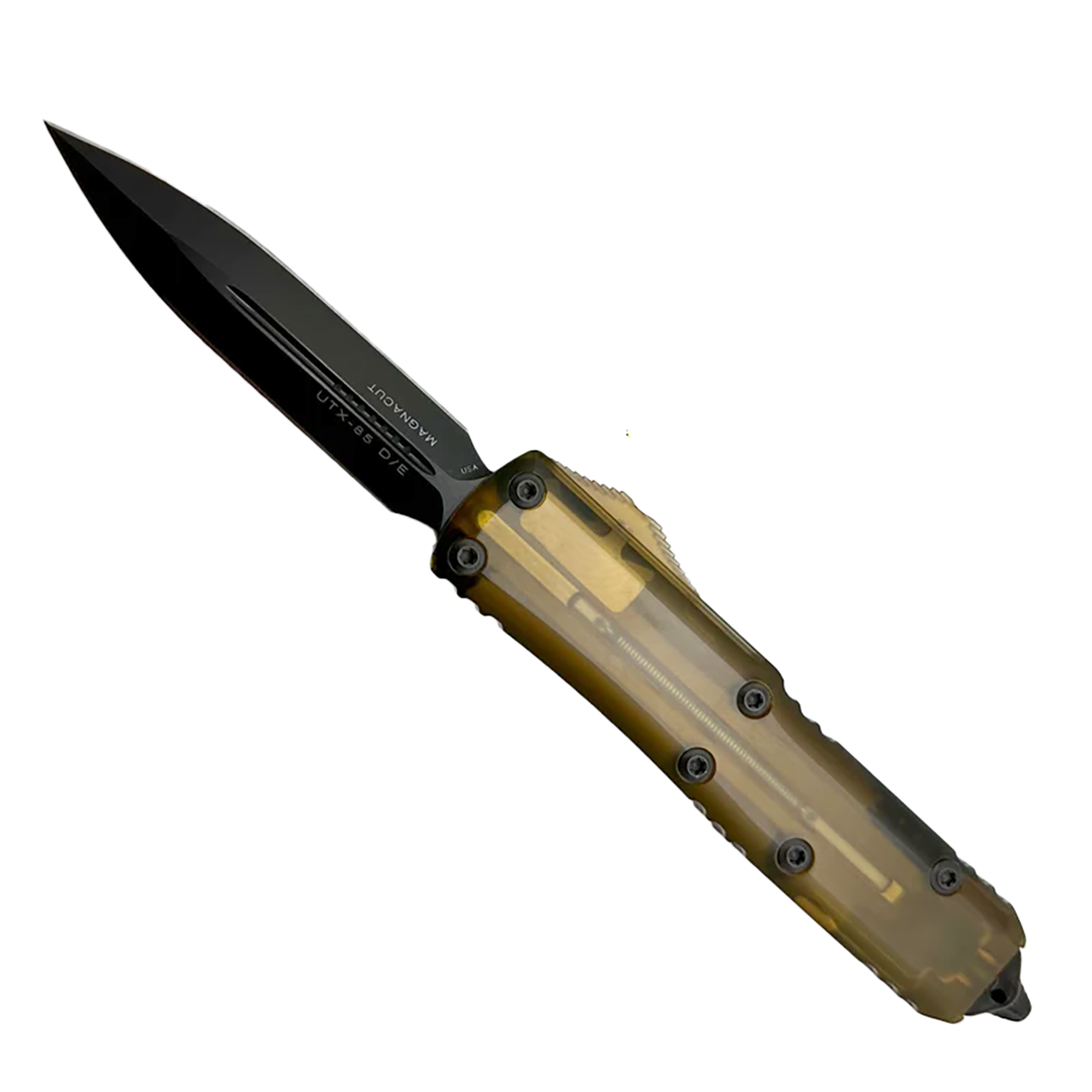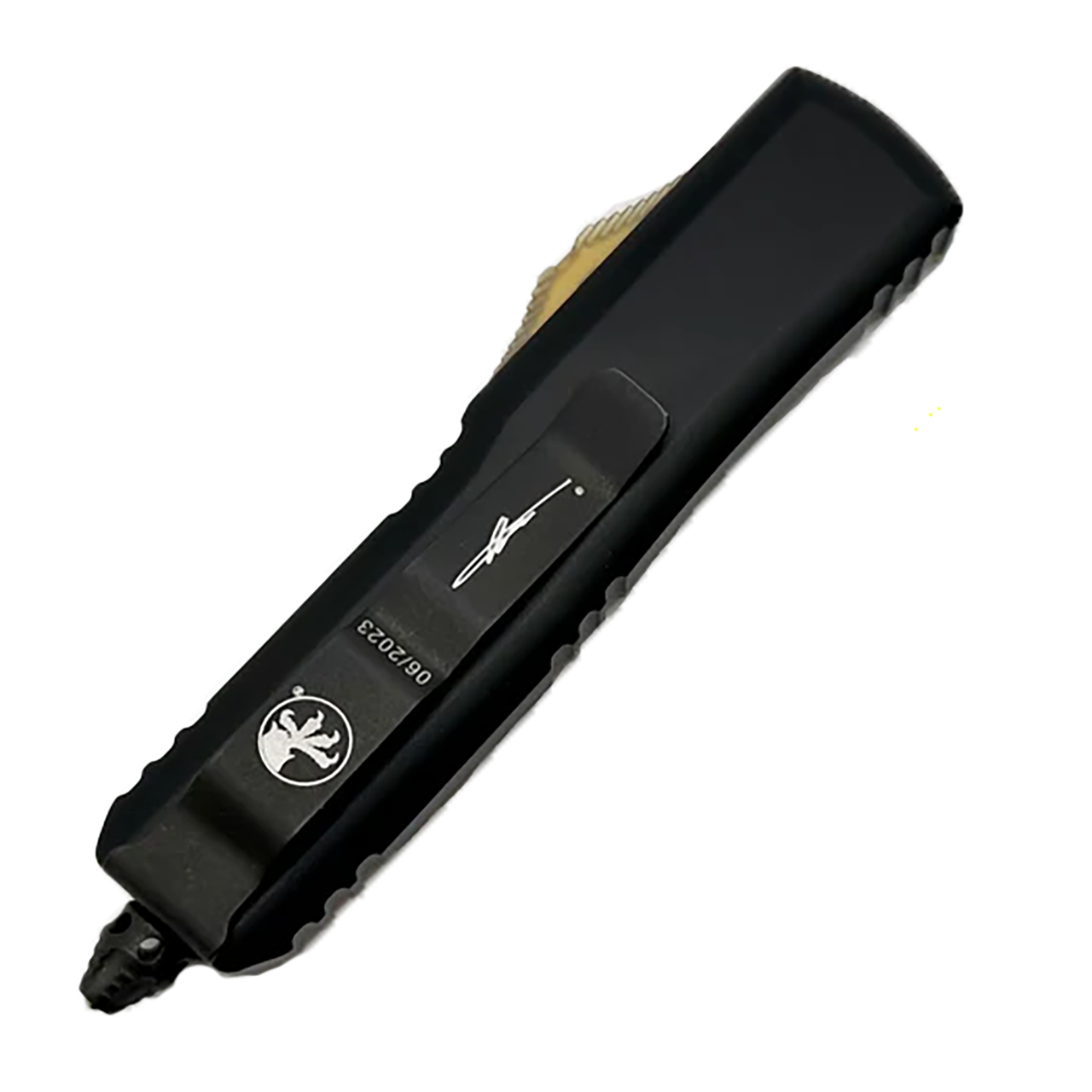 Microtech has updated and refined the UTX-85 model. It features improved ergonomics, with rounded handle faces, and patches of grooves along the sides to ensure excellent grip. The firing button has been redesigned to increase surface contact for effective engagement, and the glass breaker has a ball-tip set in the trip-angle pattern base to increase its everyday carry manners. Based on the Ultratech platform, the UTX-85 is scaled down to 85% of its length. The UTX-85 is an appealing option for those who prefer a smaller EDC knife and value Microtech's high-performance out-the-front action and exceptional build quality.