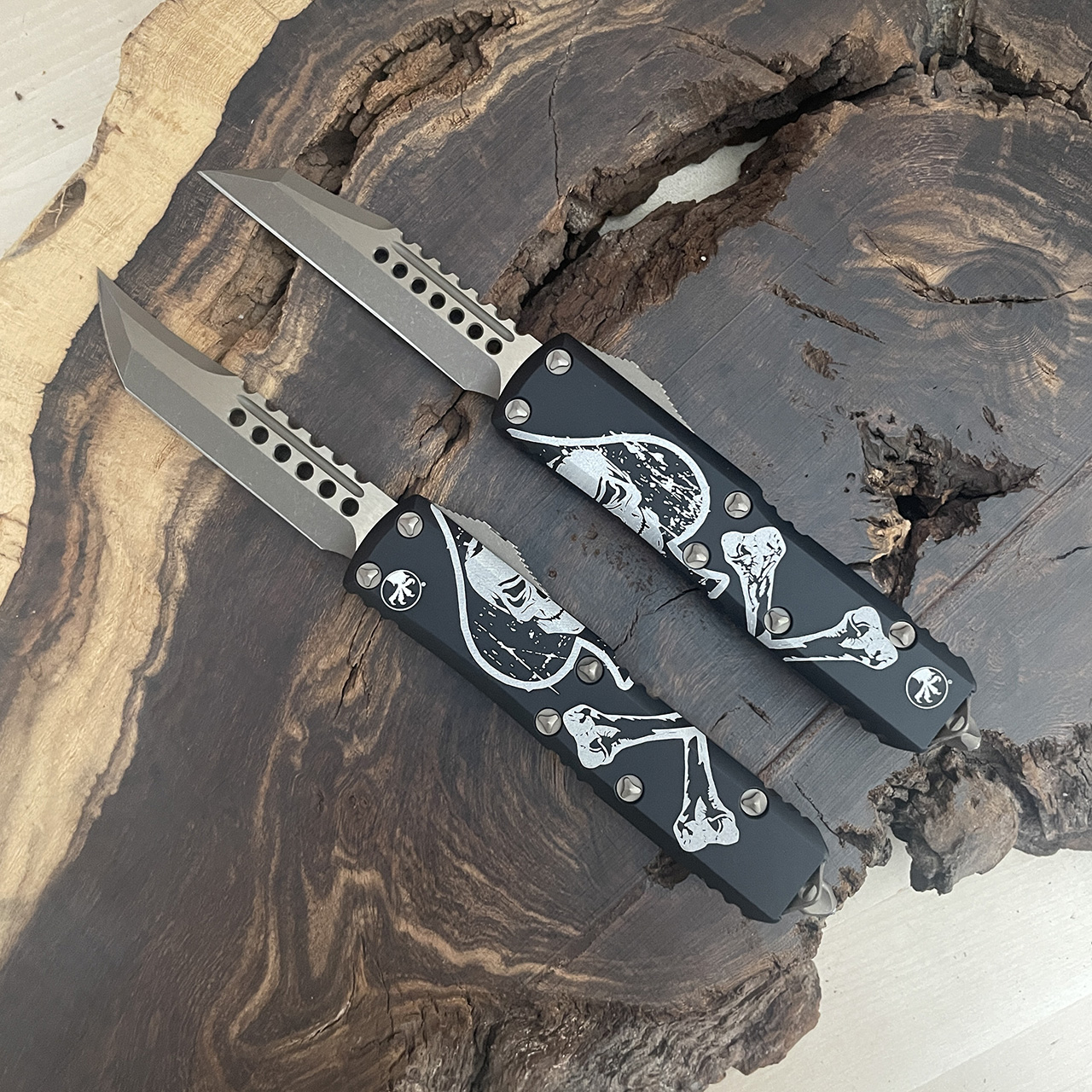 Microtech UTX-85 Death Card Hellhound and Warhound Set Bronzed Apocalyptic Standard Signature Series 719-13SETDCS