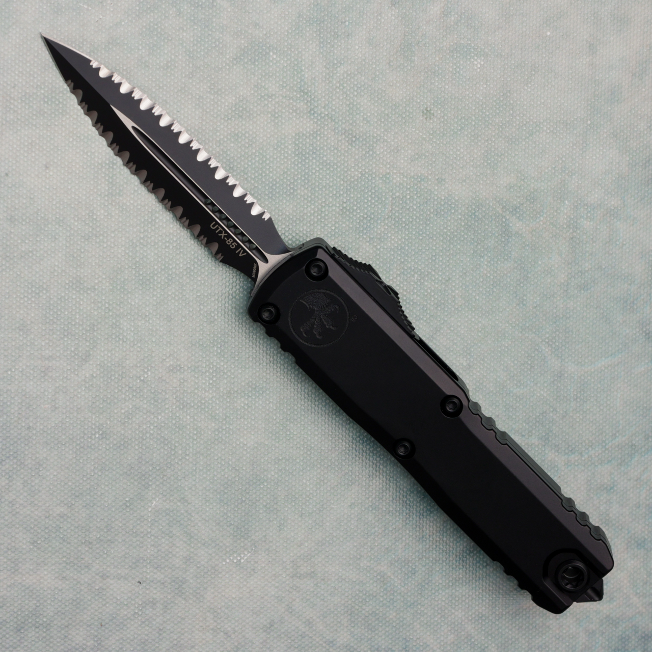 Microtech UTX-85 Gen IV D/E Black Tactical Double Full Serrated Blade 12324-D3T