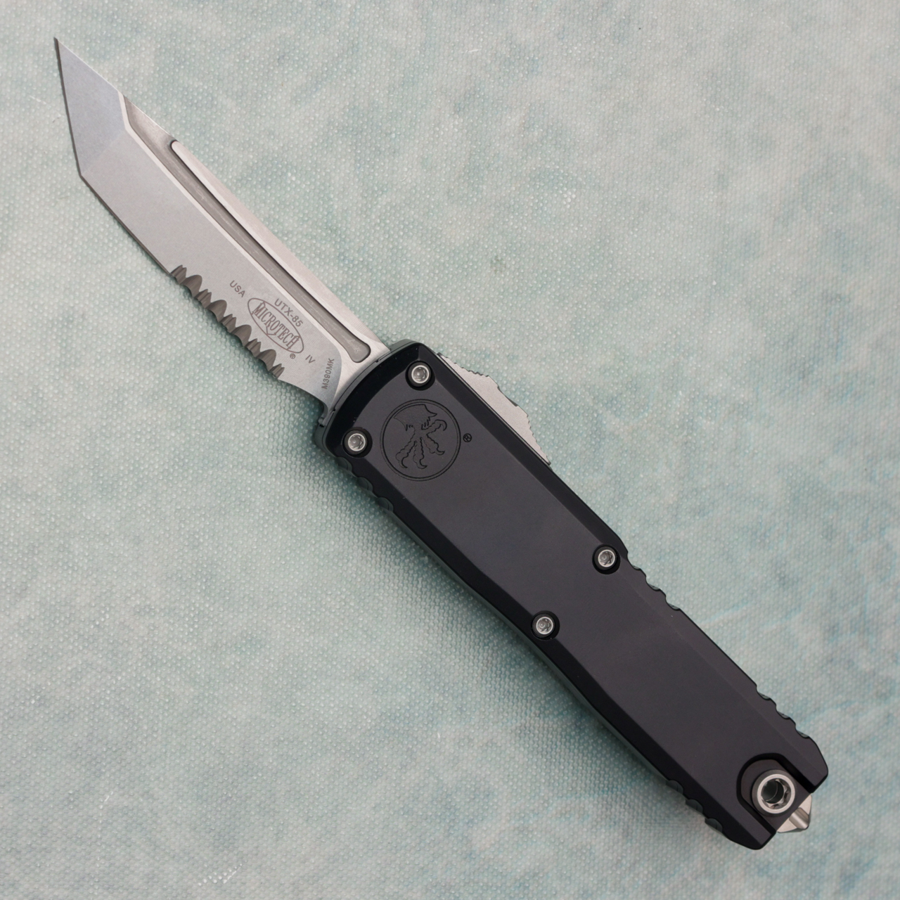 Microtech UTX-85 Gen IV T/E Black Handle Stonewash Part Serrated Blade 12334-11