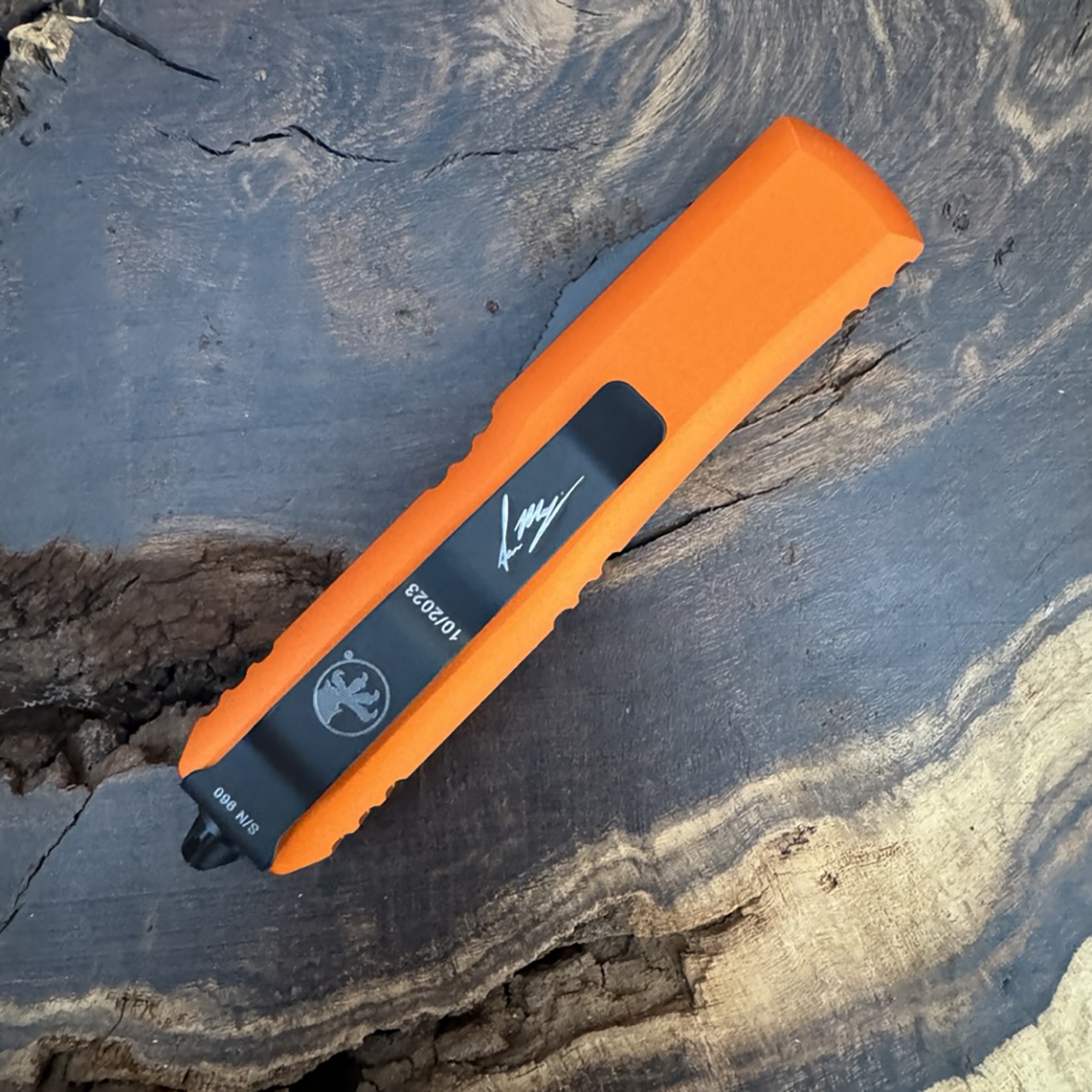 Microtech UTX-85 Hellhound Orange Black Standard Signature Series 719-1ORS
