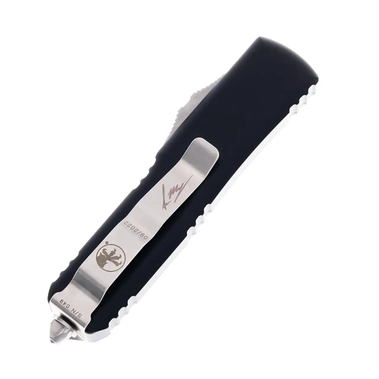 Microtech has updated and refined the UTX-85 model. It features improved ergonomics, with rounded handle faces, and patches of grooves along the sides to ensure excellent grip. The firing button has been redesigned to increase surface contact for effective engagement, and the glass breaker has a ball-tip set in the trip-angle pattern base to increase its everyday carry manners. Based on the Ultratech platform, the UTX-85 is scaled down to 85% of its length. The UTX-85 is an appealing option for those who prefer a smaller EDC knife and value Microtech's high-performance out-the-front action and exceptional build quality.