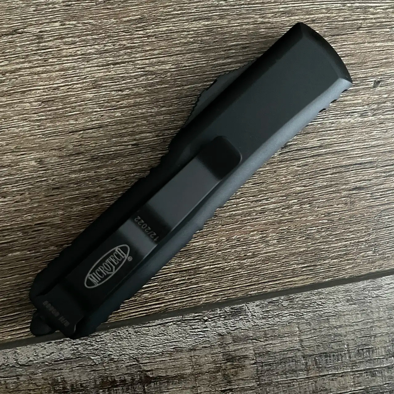 This model features black tactical anodized 6061-T6 aluminum handle scales, the front scale has the Microtech Claw logo. Black tactical finished M390 stainless steel Spartan double edge dagger blade with double fully serrateed cutting edges. Black finished hardware, pocket clip, and glass breaker. The blade has the model information. The pocket clip has the Microtech logo, serial number, and production date. Brand new in box.
