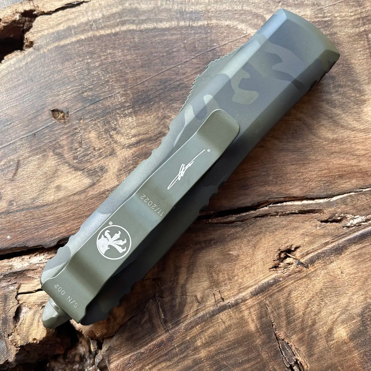 Microtech UTX-85 T/E Olive Camo Full Serrated Signature Series 233-3OCS