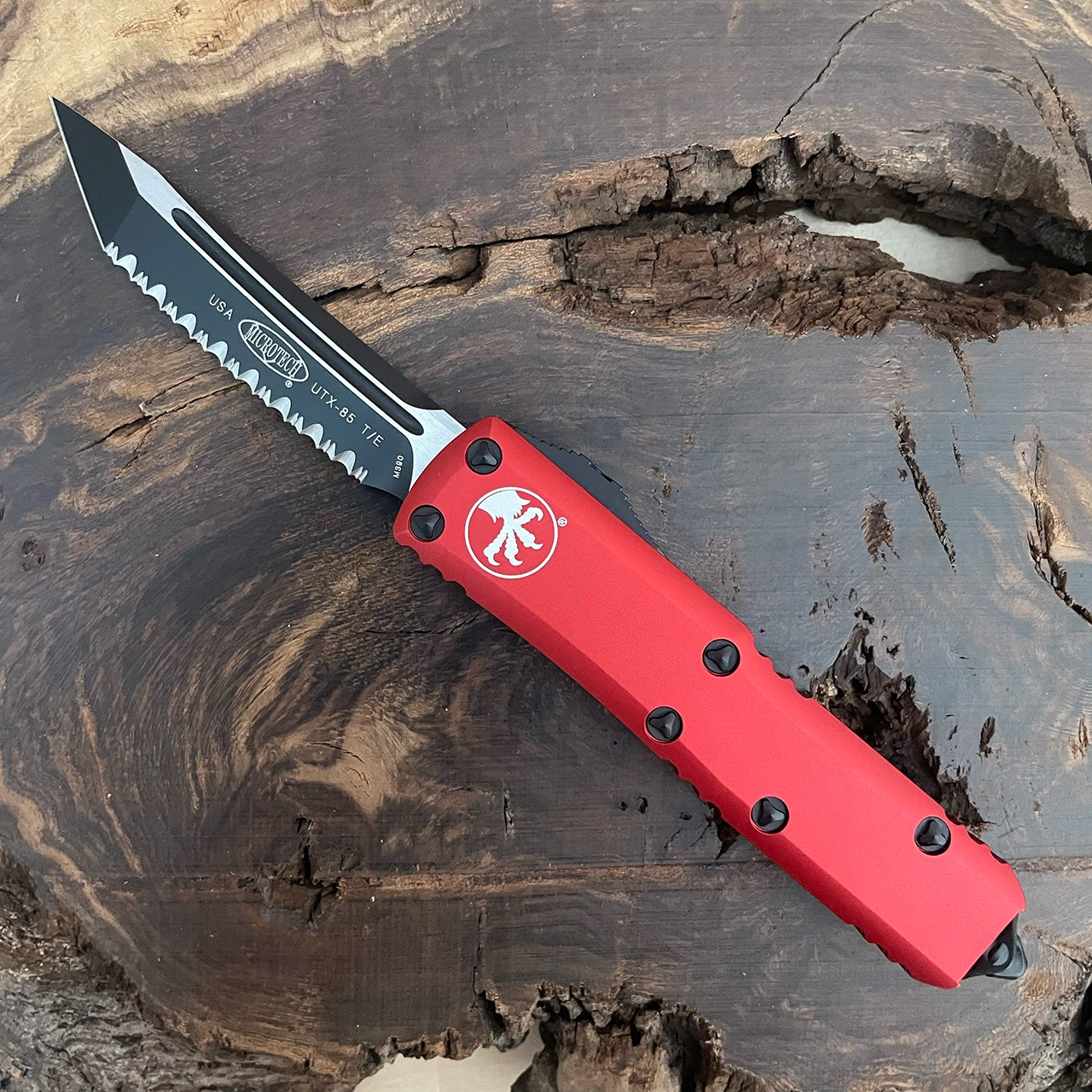 Microtech UTX-85 T/E Red Handle Black Full Serrated Blade 233-3RD