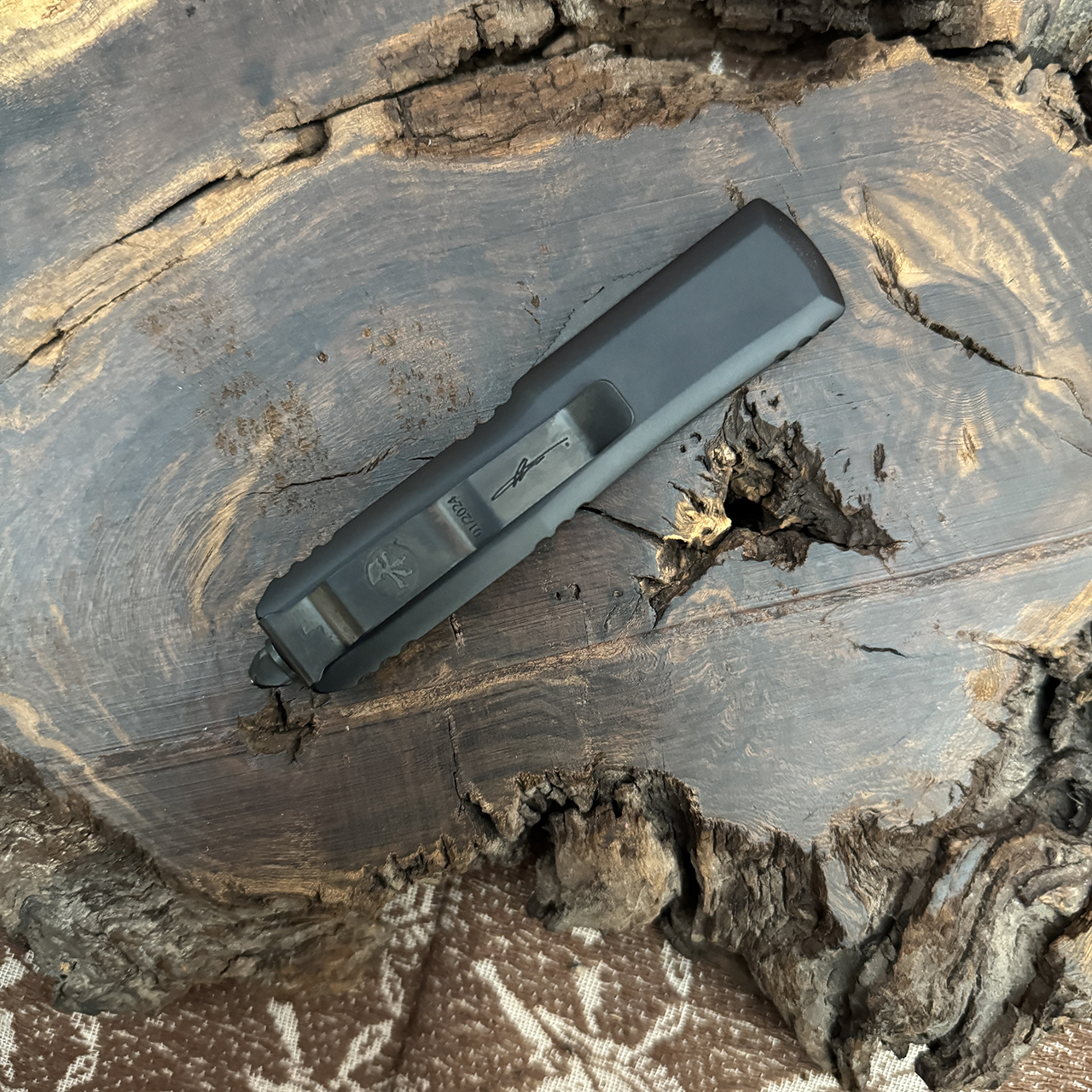 Microtech has updated and refined the UTX-85 model. It features improved ergonomics, with rounded handle faces, and patches of grooves along the sides to ensure excellent grip. The firing button has been redesigned to increase surface contact for effective engagement, and the glass breaker has a ball-tip set in the trip-angle pattern base to increase its everyday carry manners. Based on the Ultratech platform, the UTX-85 is scaled down to 85% of its length. The UTX-85 is an appealing option for those who prefer a smaller EDC knife and value Microtech's high-performance out-the-front action and exceptional build quality.