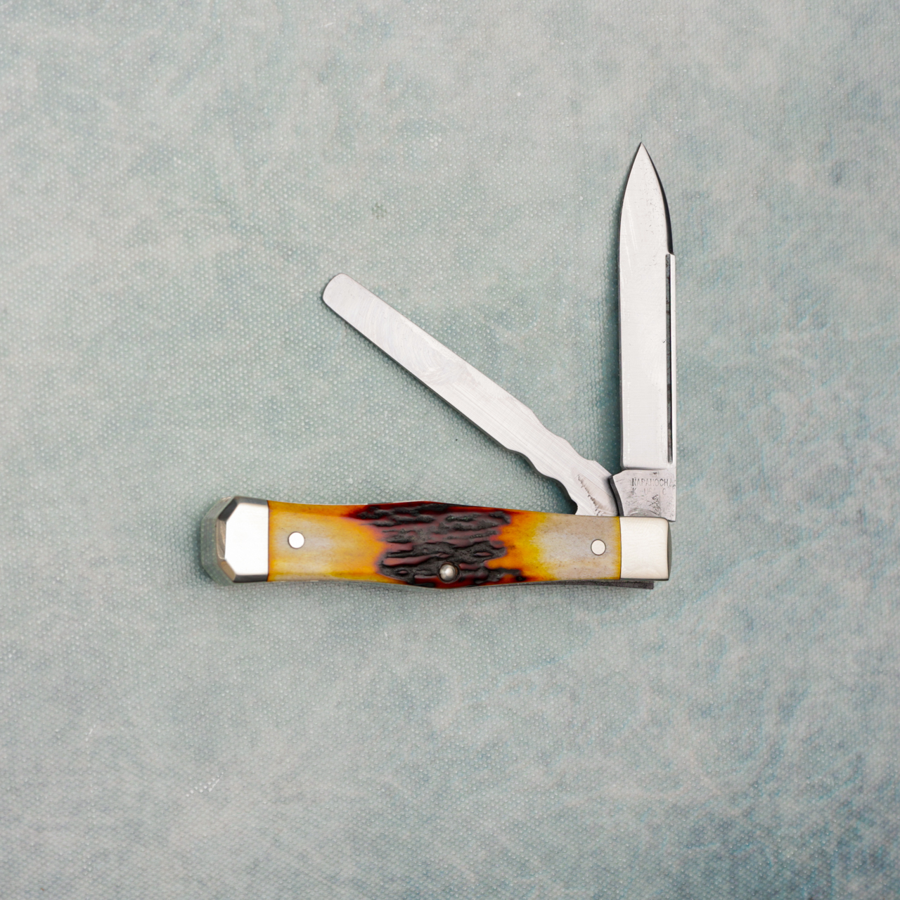Napanoch Knife Co Mortician Genuine Amber Stag