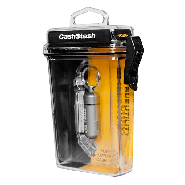 Never run out of money again! Emergency cash capsule for your key ring. Cash-clip secures one note of any currency on your key ring. As small as your key and waterproof. Constructed of aircraft grade aluminum. Key ring included. Makes a perfect gift, especially if you put cash in it! Packaged in a reusable, clear, weatherproof case to use with your phone, keys, cash, or other valuables.