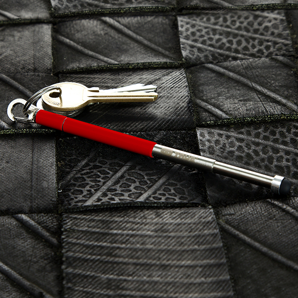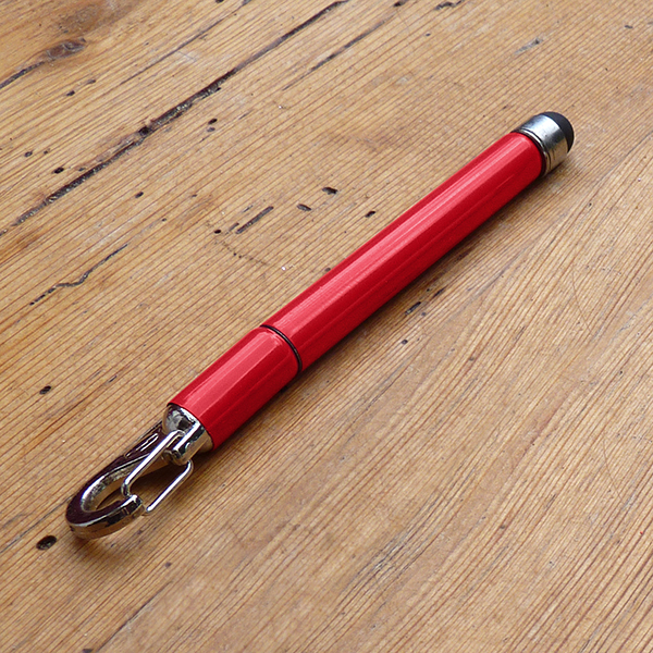 Full length telescopic keychain pen and touch screen stylus for your mobile device. It includes the following design features a ballpoint pen, telescopic design, quick release keychain clip and a sensitive stylus for all touch screens. 3 black ink refills included and it is packaged in a watertight reusable case.