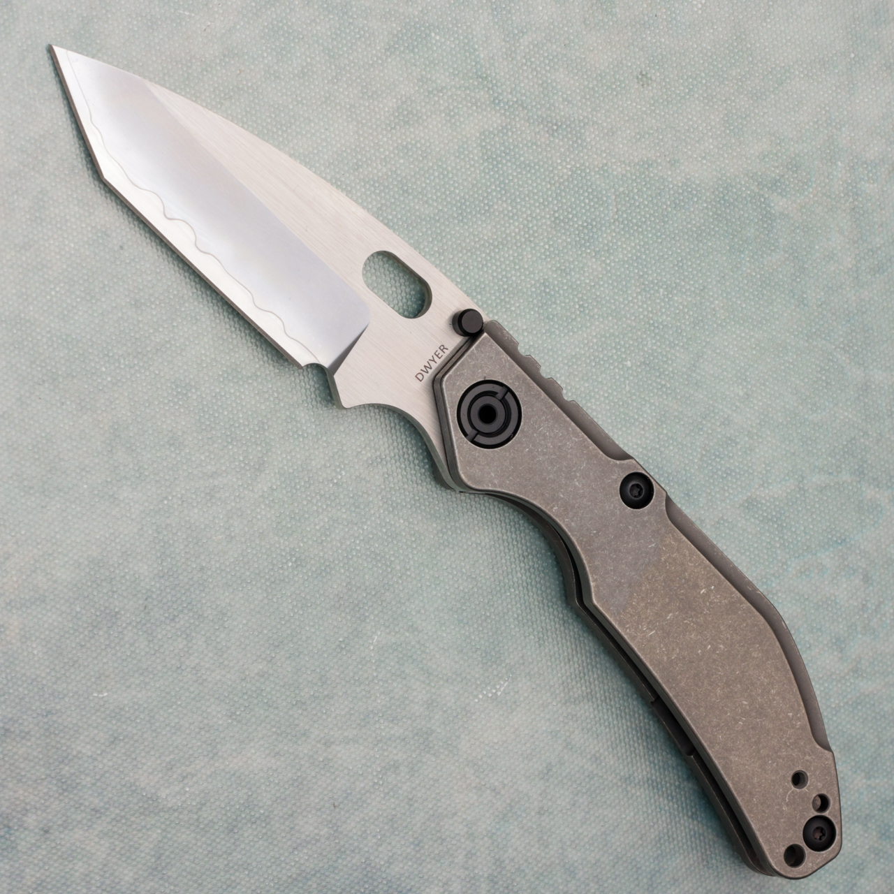 The North Mountain Blade BBNM is a precision crafted folding knife that blends modern performance with traditional craftsmanship. Designed by Duane Dwyer and made by Japanese trained artisans, this knife features a striking SLD semi stainless steel blade with a satin finish and hamon, offering exceptional durability and edge retention. The tanto blade shape and flat grind ensure reliable cutting power for a variety of tasks, while the titanium handle provides a sturdy yet lightweight grip. A robust frame lock secures the blade, and the smooth action makes deployment effortless. Built for those who demand quality and performance, the BBNM is a refined pocket knife with a rugged soul. Brand new in box.