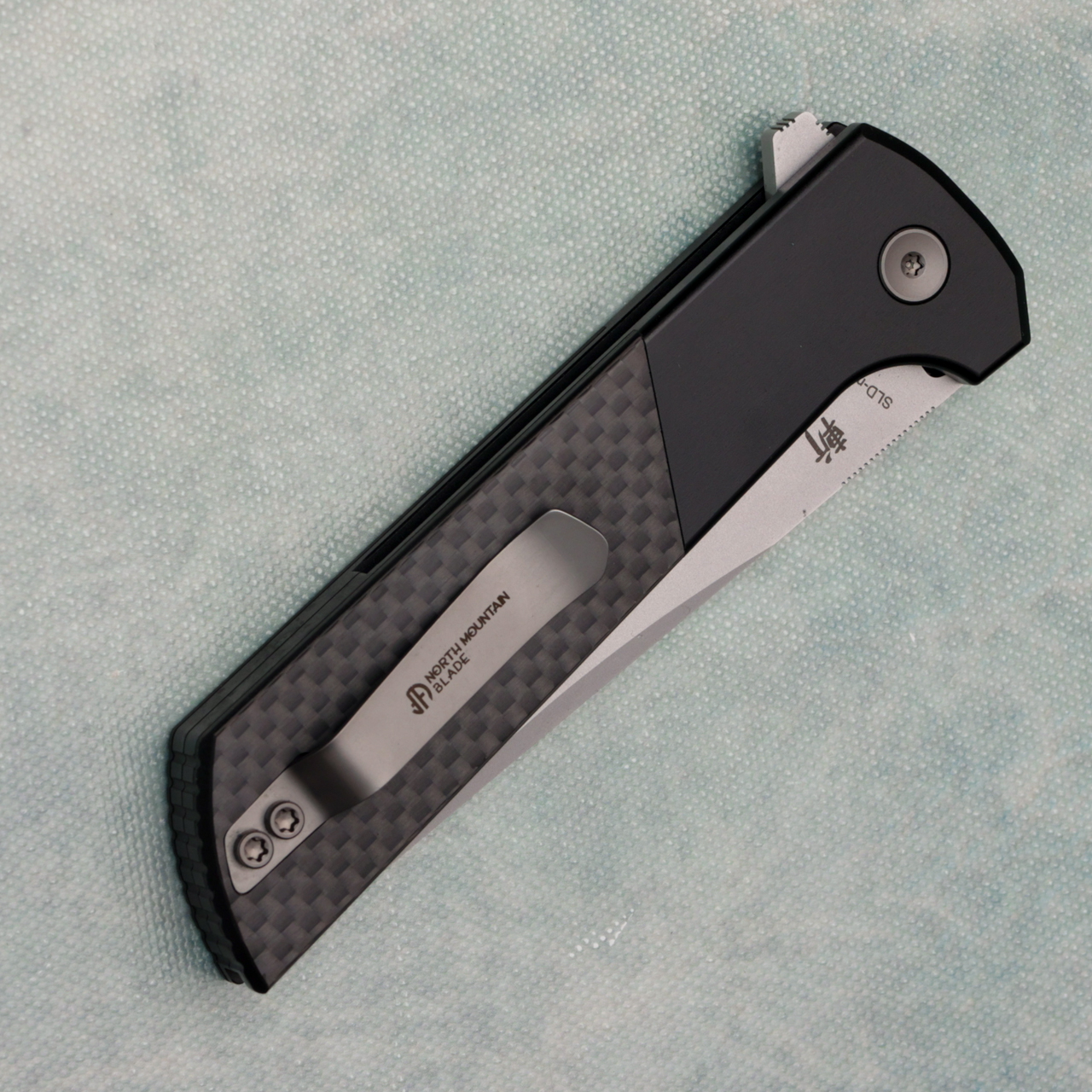 North Mountain Blade Chop 2 Button Lock Black Aluminum Handles w/Carbon Fiber Inlays SLD-Magic Blade 2407-CF