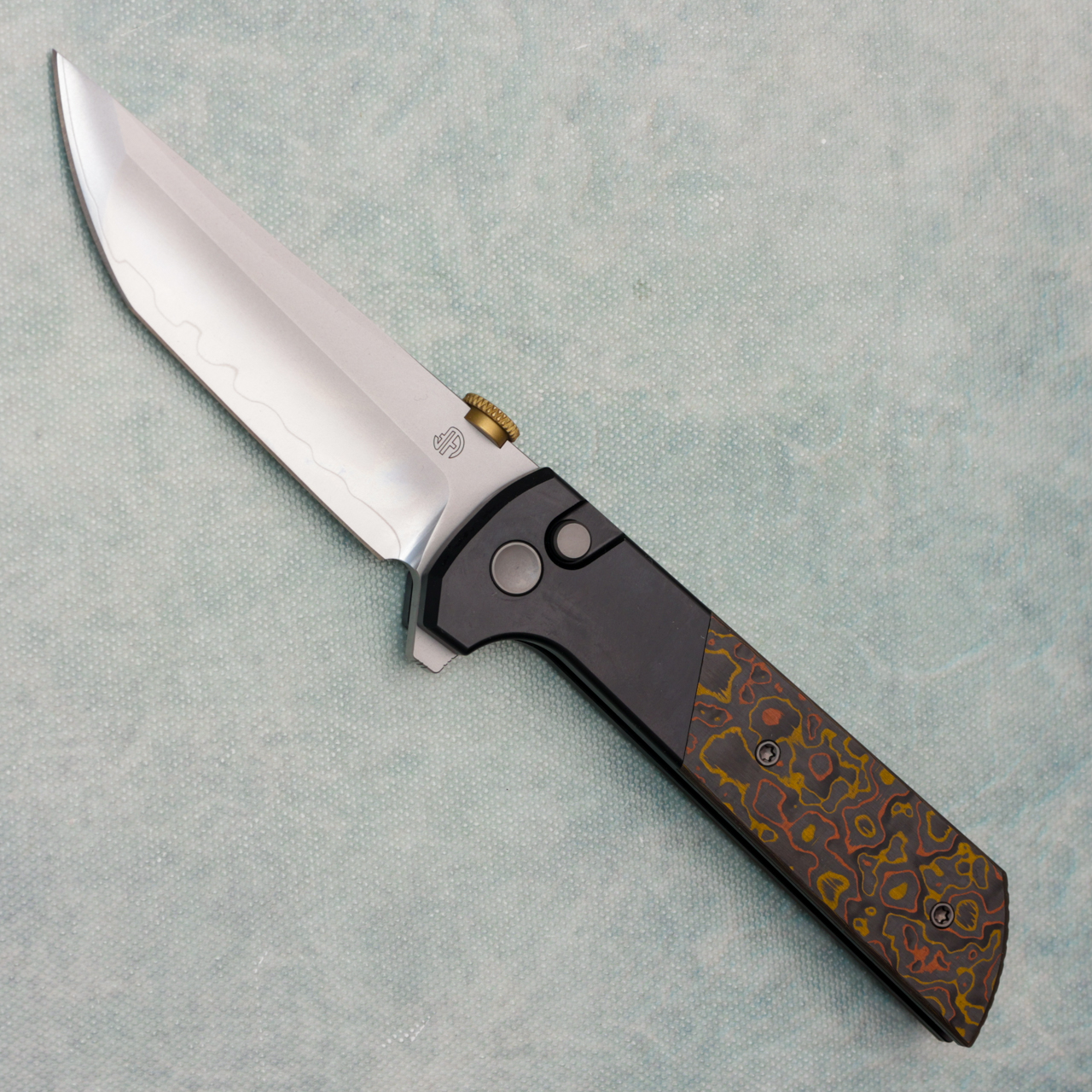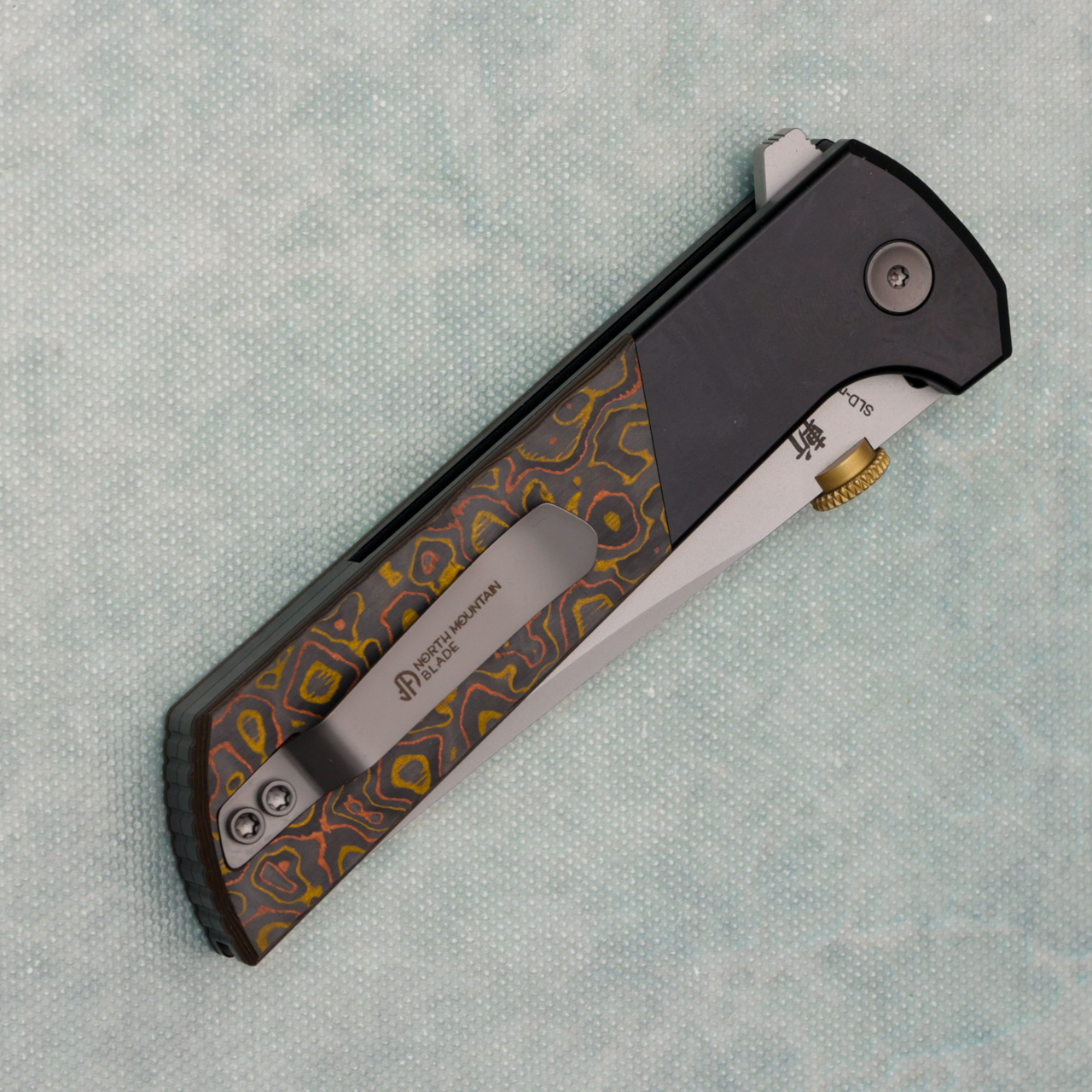 North Mountain Blade Chop 2 Button Lock Black Aluminum Handles w/Copper Carbon Fiber Inlays SLD-Magic Blade 2407-CUCF