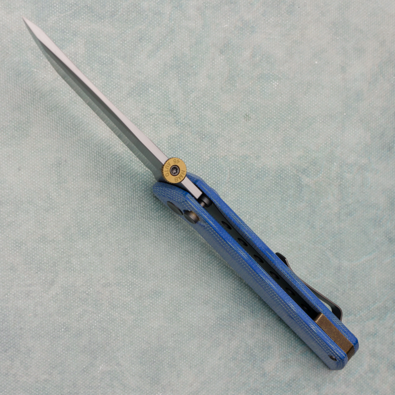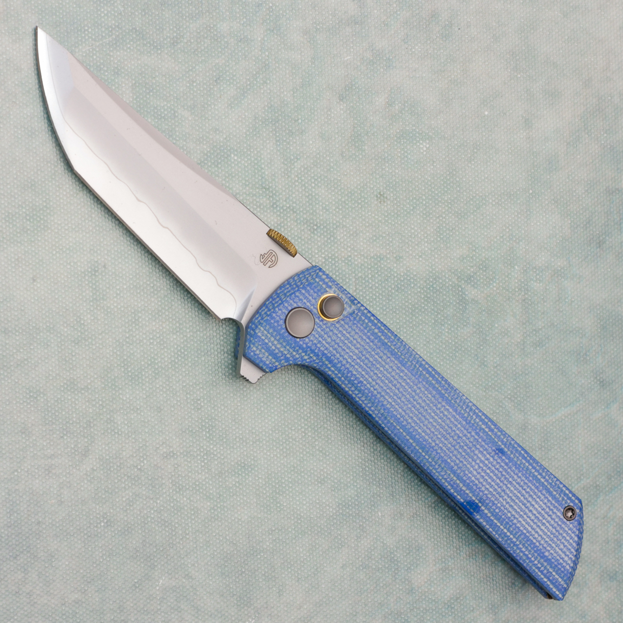 The 2406 series is an upgraded version of our classic best selling Chop. The design is based on the 2405. The upgraded feature is that a thumb disk is added to the blade, which brings a better experience to the folding knife. If you prefer to open with a thumb disk, this is undoubtedly the best choice. This version features blue canvas micarta handles. New in box.