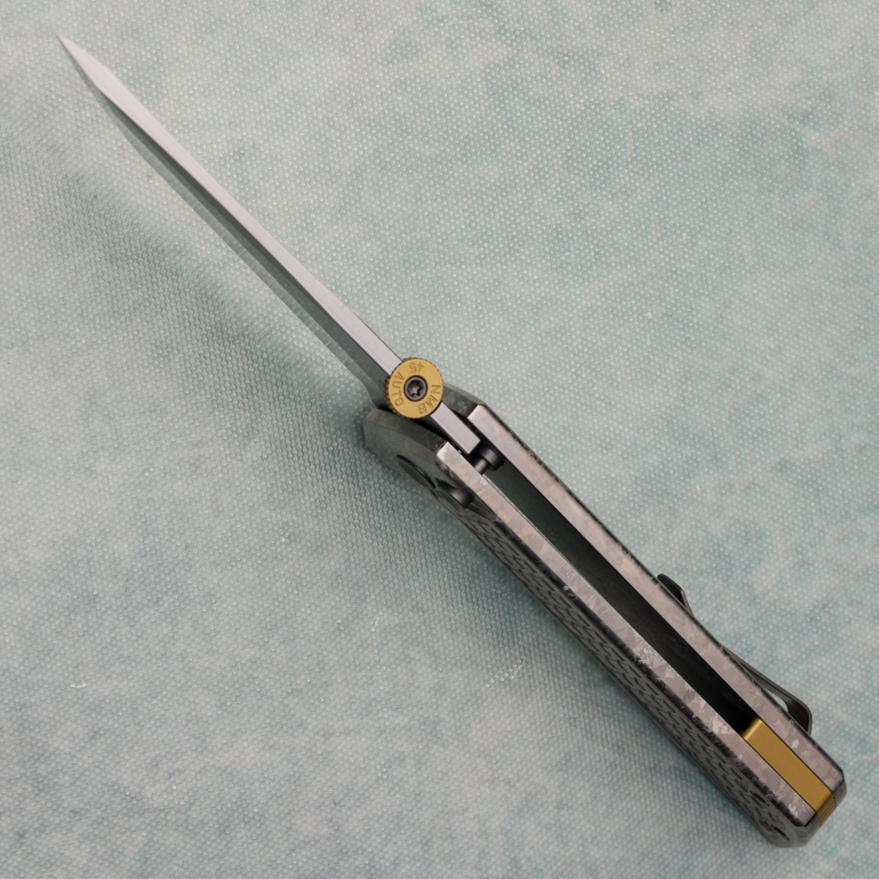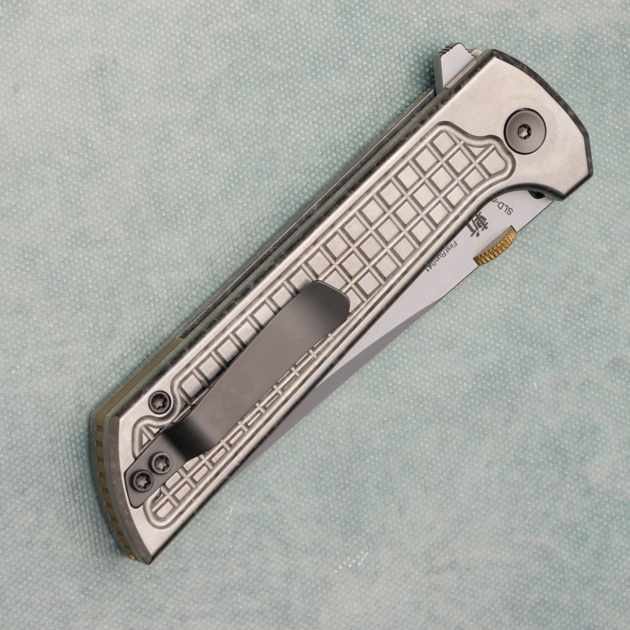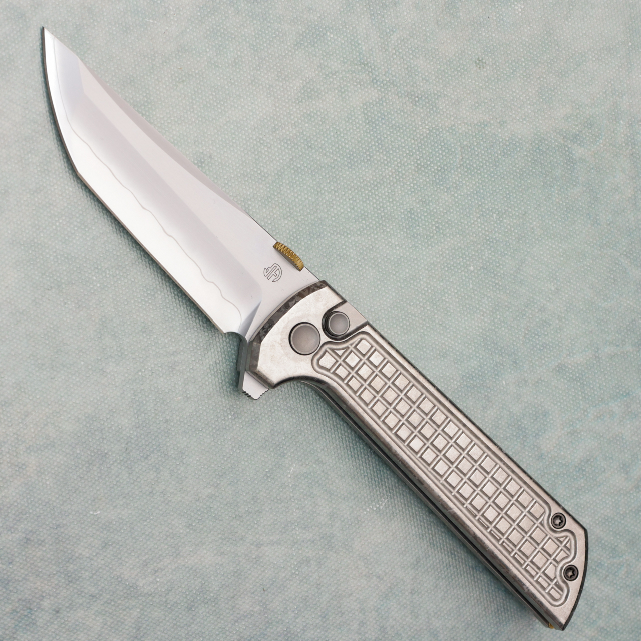The 2406 series is an upgraded version of our classic best selling Chop. The design is based on the 2405. The upgraded feature is that a thumb disk is added to the blade, which brings a better experience to the folding knife. If you prefer to open with a thumb disk, this is undoubtedly the best choice. This version features crystalized titanium ice grid silver scales. New in box.