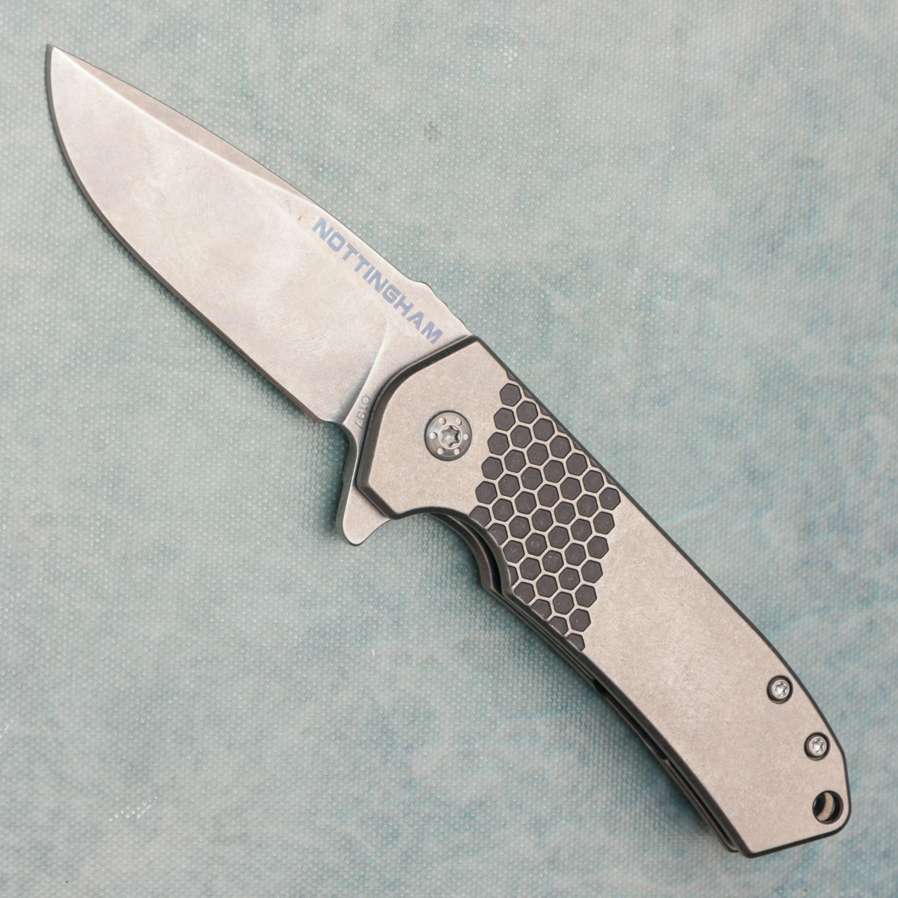 Nottingham Tactical Ultra4 Frame Lock Flipper Honey Badger Blackened Tumbled Titanium Handle Stonewash CPM-154 Blade