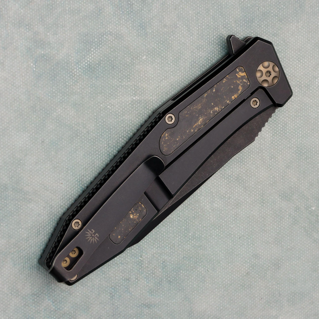 Off Grid Knives Scorpion V2 Frame Lock Flipper Black Titanium Handles w/ Gold Carbon Fiber Inlays Blackwash M390 Blade (Pre-owned)
