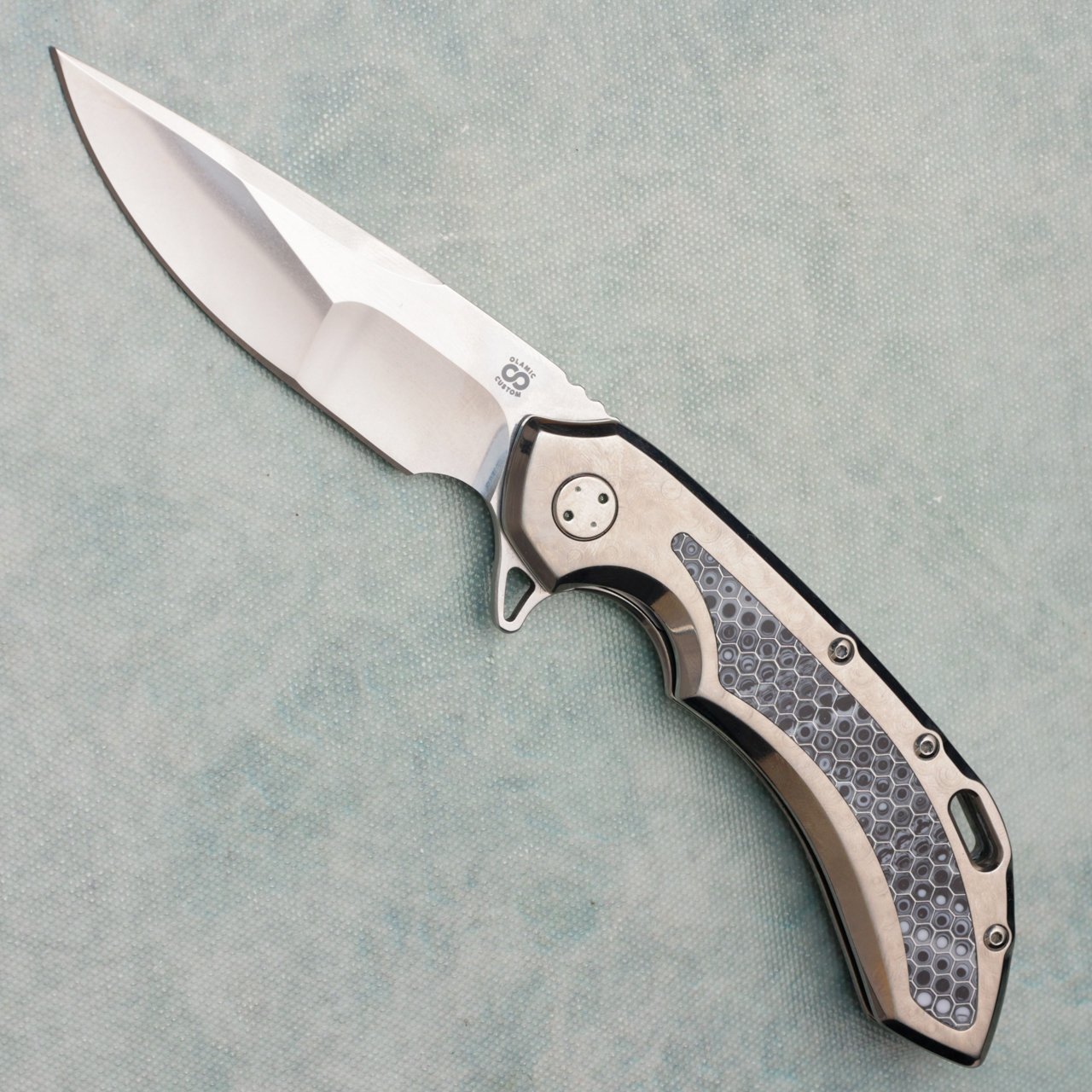 Olamic Custom Knives Wayfarer 247 Frame Lock Jeweled Titanium Handle w/ C-Tek Inlays Staticwash CTS-XHP Blade (Pre-Owned)