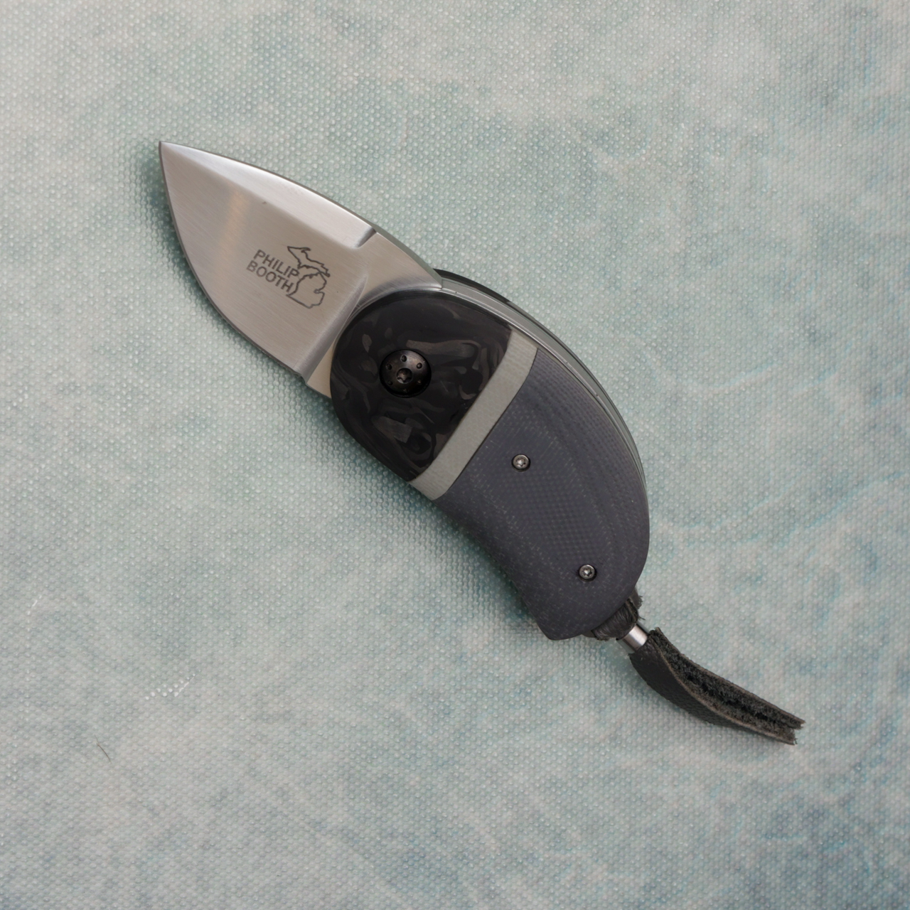 Philip Booth Custom Model 18 Minnow Scale Release Auto Gray G10 Handle w/ Marbled Carbon Fiber Bolster Satin Blade