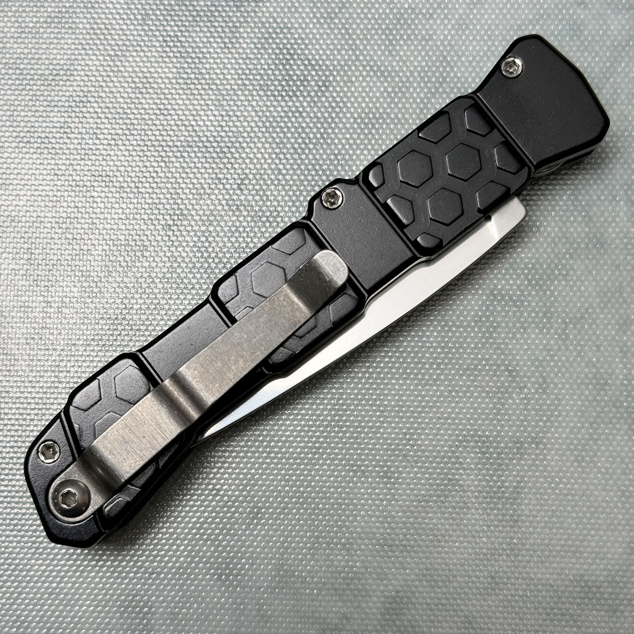 Add a comfortably sized automatic knife to your EDC rotation with the Piranha 21 series. The Piranha 21 is built with a hard coat anodized aircraft alloy handle that provides a sturdy frame while remaining light in the hand. A front loaded firing button offers rapid deployment and a recessed design to prevent pocket misfires