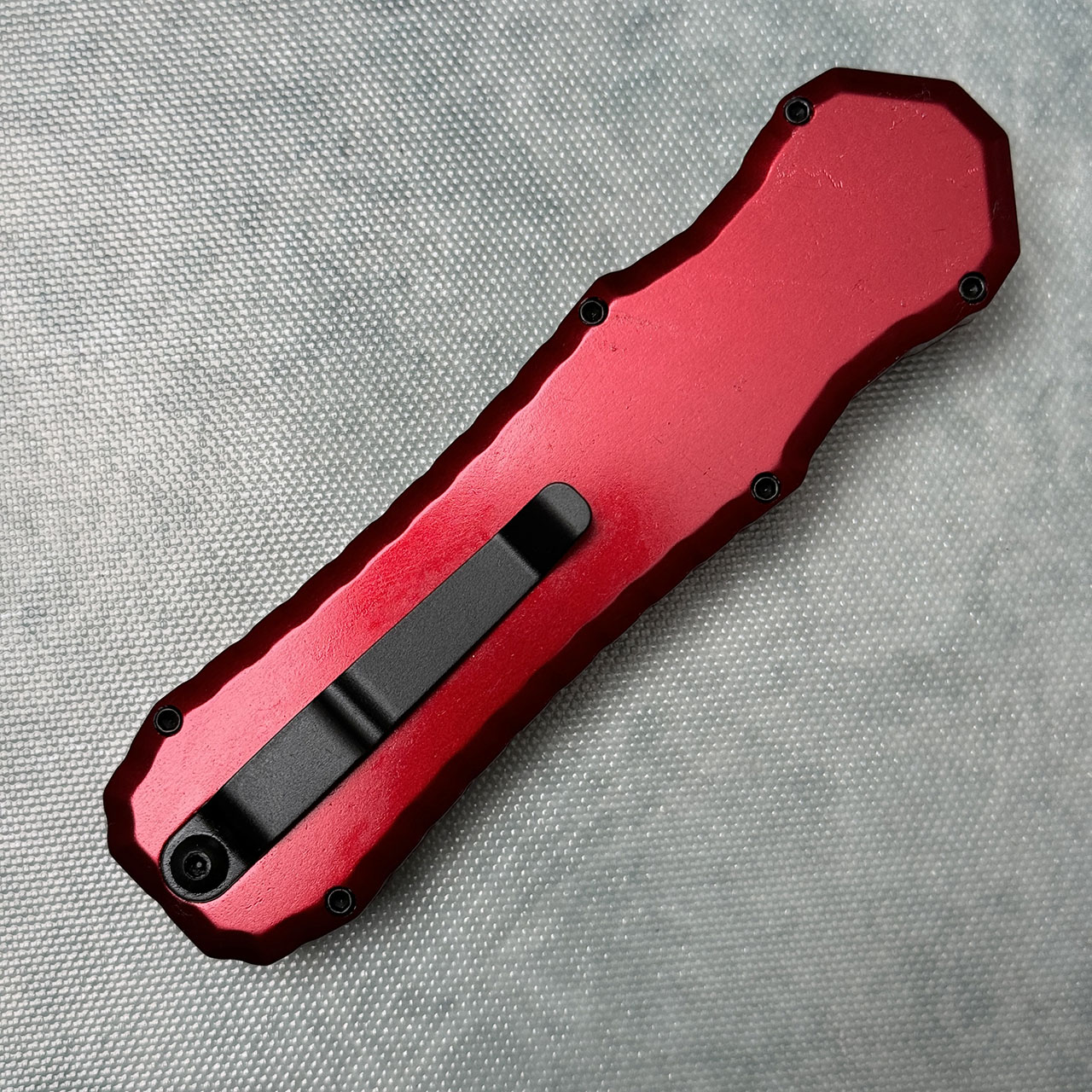 Piranha Excalibur OTF D/E Red Handle Tactical Black Blade