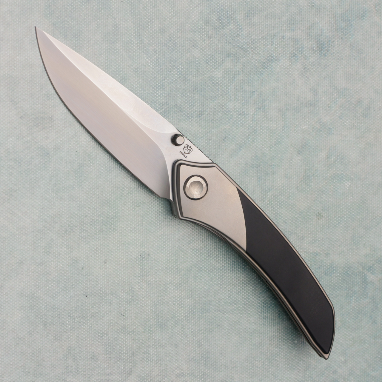 Poikilo Blade Tuna Mini Standard 1 Inset Liner Lock Titanium Handle Pearlescent Stonewash M398 Blade