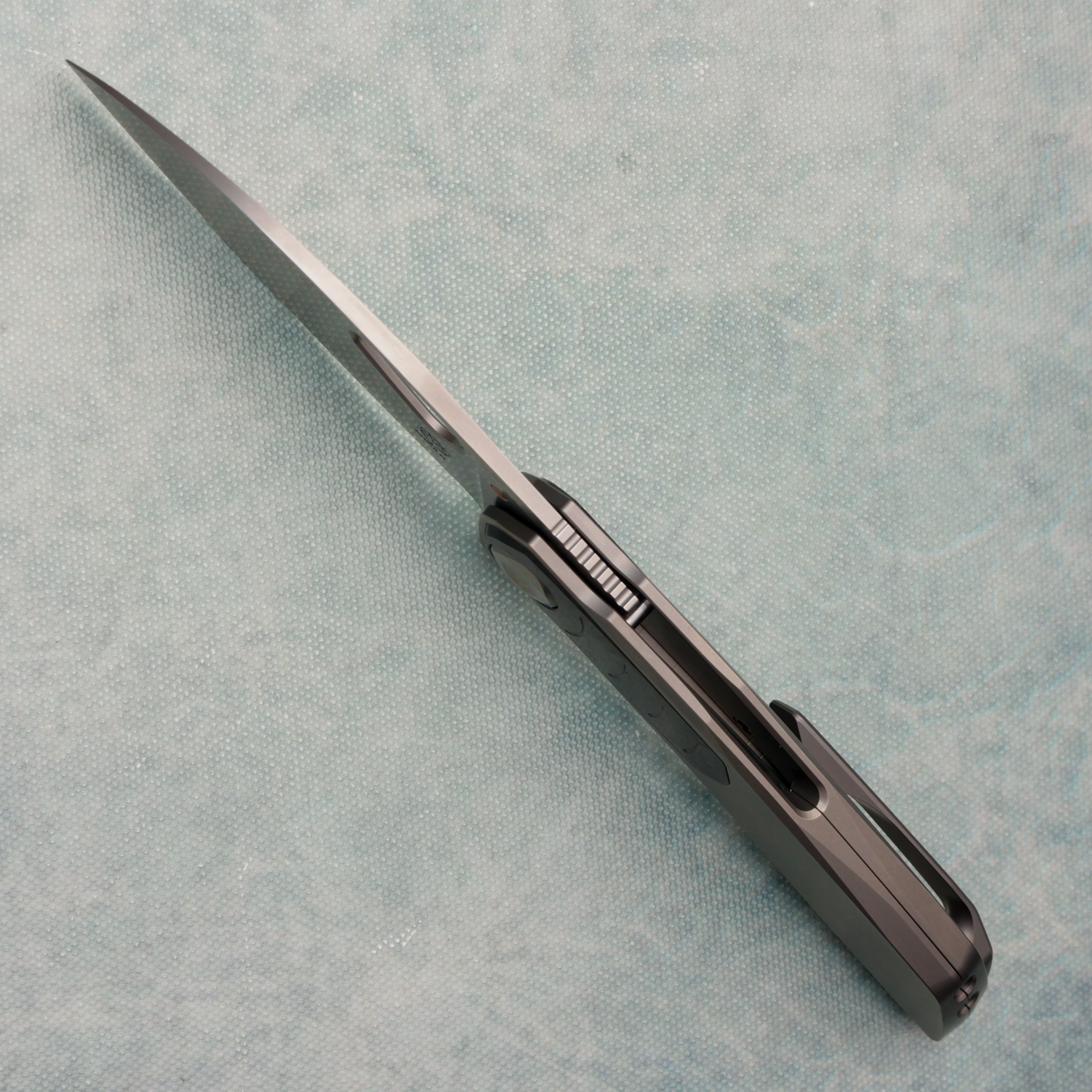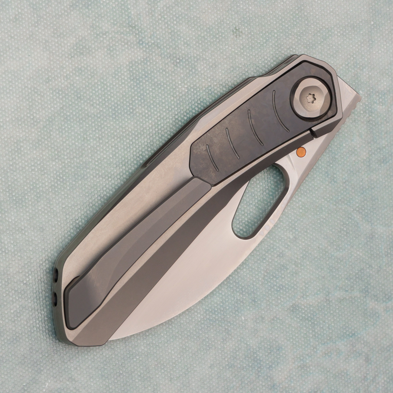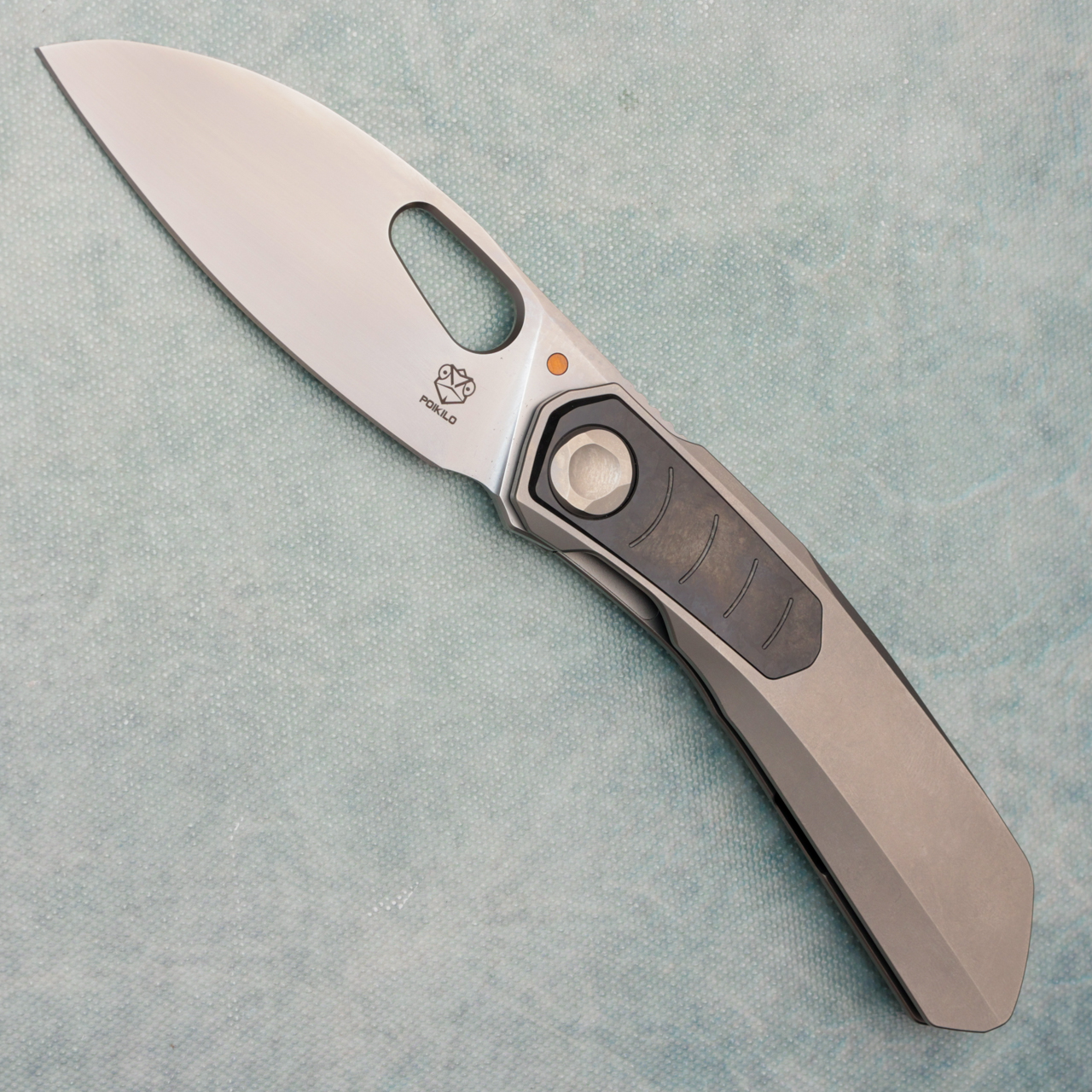 Poikilo Blade Vulpex Crab Standard 1 Frame Lock Titanium Handle w/ Crystalized Titanium Inlays Pearlescent Stonewash M398 Blade VKCRAB-S1