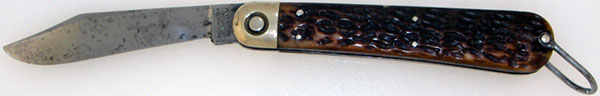 Real nice antique bone handle scales with no cracks, the bone handle knives were for the officers. Large clip blade has a little pitting - but not too bad. Spring still snaps the blade open. Bail on end of handle. One very hard to find old knife in great condition.